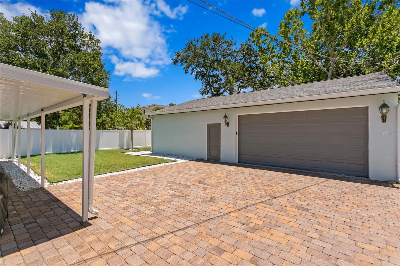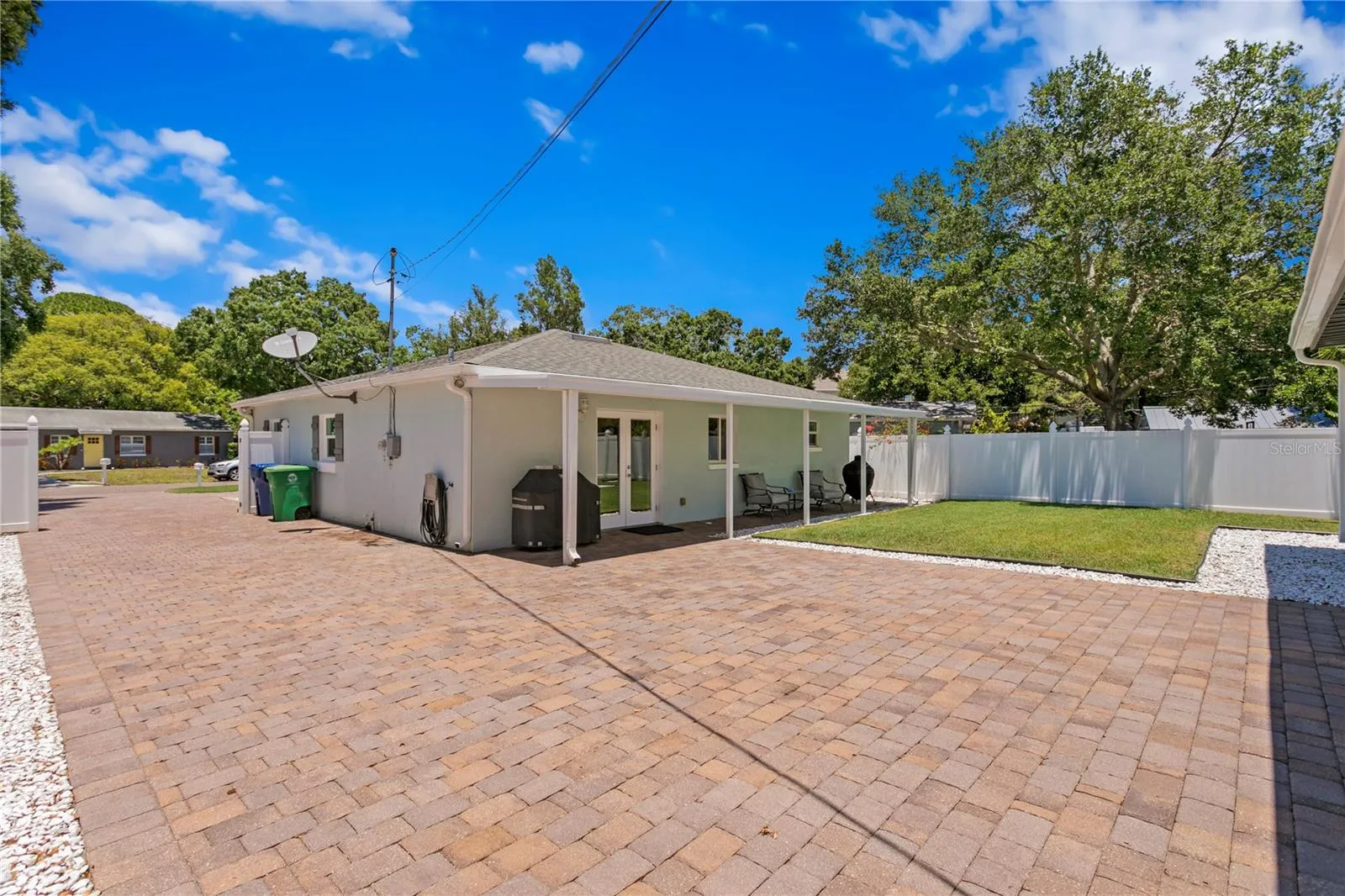 Situated on a large, private, and fenced-in lot, this South Tampa home features a 1260 sq ft 3 bed/2 bath main house and a 540 sq ft apartment with 1 bed/1 bath! The property boasts an oversized 40′ wide x 30′ deep 2-car detached garage with the separate in-law suite, perfect for guests or additional living space. The expansive driveway also provides plenty of room to store your boat, RV, or camper. As you step inside the main house, you’ll be greeted by an open-concept floorplan where the living room seamlessly flows into the kitchen, featuring white cabinetry, updated stainless steel appliances, and abundant natural light through the windows and French doors. Down the hall, the master suite offers his and hers closets along with an en-suite bathroom with dual vanities and a tile walk-in shower. The two additional bedrooms share an updated bathroom with a newly refinished tub/shower combo. A separate laundry room with space for extra storage also adds to the home’s functionality. The detached in-law suite provides great privacy for your guests, complete with a spacious bedroom, full bathroom with a walk-in shower, and a convenient kitchenette equipped with a mini-fridge. This exceptional home combines modern amenities with prime location, making it the perfect place to create lasting memories!