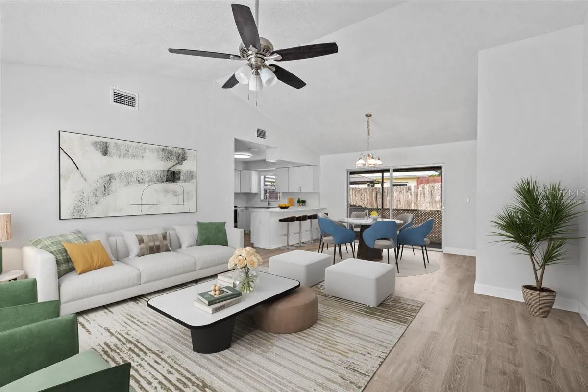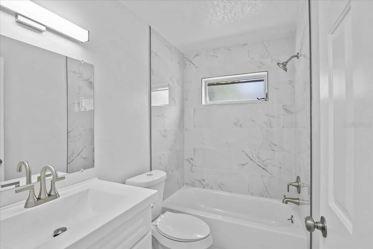 One or more photo(s) has been virtually staged. Price Improvement!!! Immaculately remodeled 3 bed 2 bath home located on a cul de sac street for added privacy in the heart of Oldsmar, FL. Step foot into this modern home greeted by beautiful vaulted ceiliings leading into the new quartz kitchen featuring a peninsula design with wood shaker cabinets, quartz countertops, tile backsplash and stainless steel appliances. New luxury vinyl plank flooring with updated baseboards throughout, new light fixtures, ceiling fans and a newer 2023 HVAC unit. Spacious primary bedroom, ensuite bathroom feauturing a split bedroom layout, indoor laundry with modern stackable washer and dryer included. Rear screen porch and a brick pavered back yard surrounded by a wood privacy fence. This home sits in a convenient location steps from Sheffield Park that features many amenities such as a hiking/running trail, tennis and basketball courts, playground and covered pavillion for events. Quick drive to new shopping centers, restaurants, downtown Tampa, international airport, clearwater beaches and St Pete! Turnkey home with NO HOA, NO hurricane damage and NO flood history. Easy to show, book your showing today!