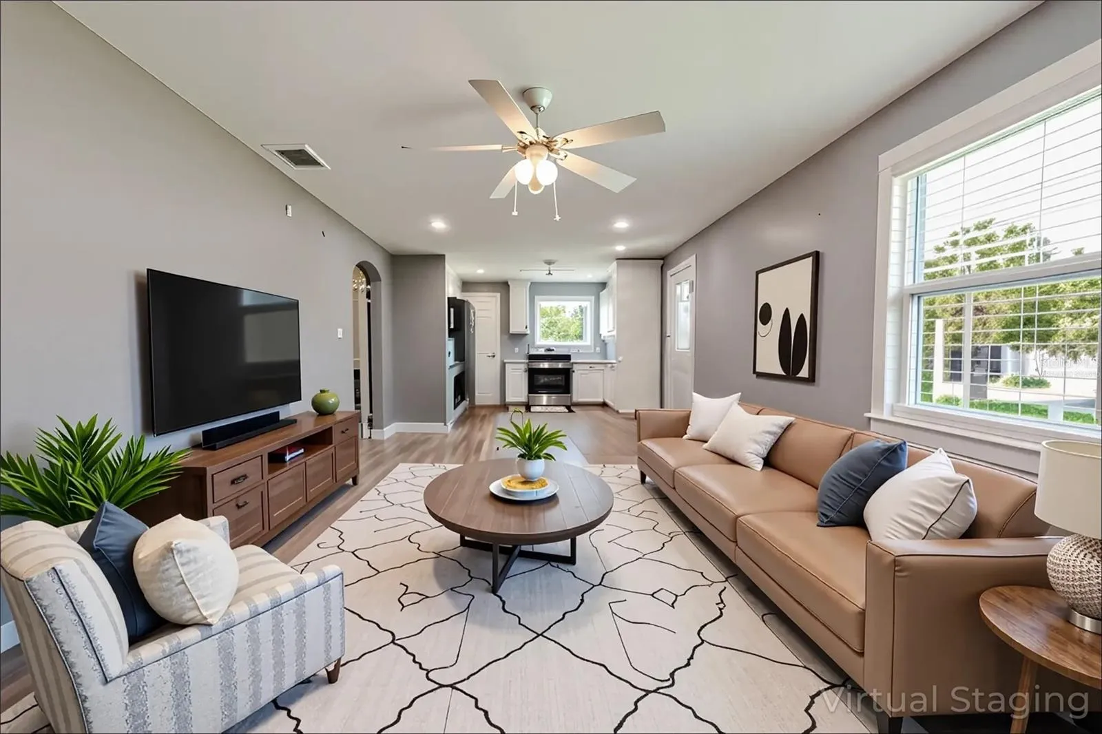 - Ceiling Fans(s), Kitchen/Family Room Combo, Split Bedroom, Window Treatments