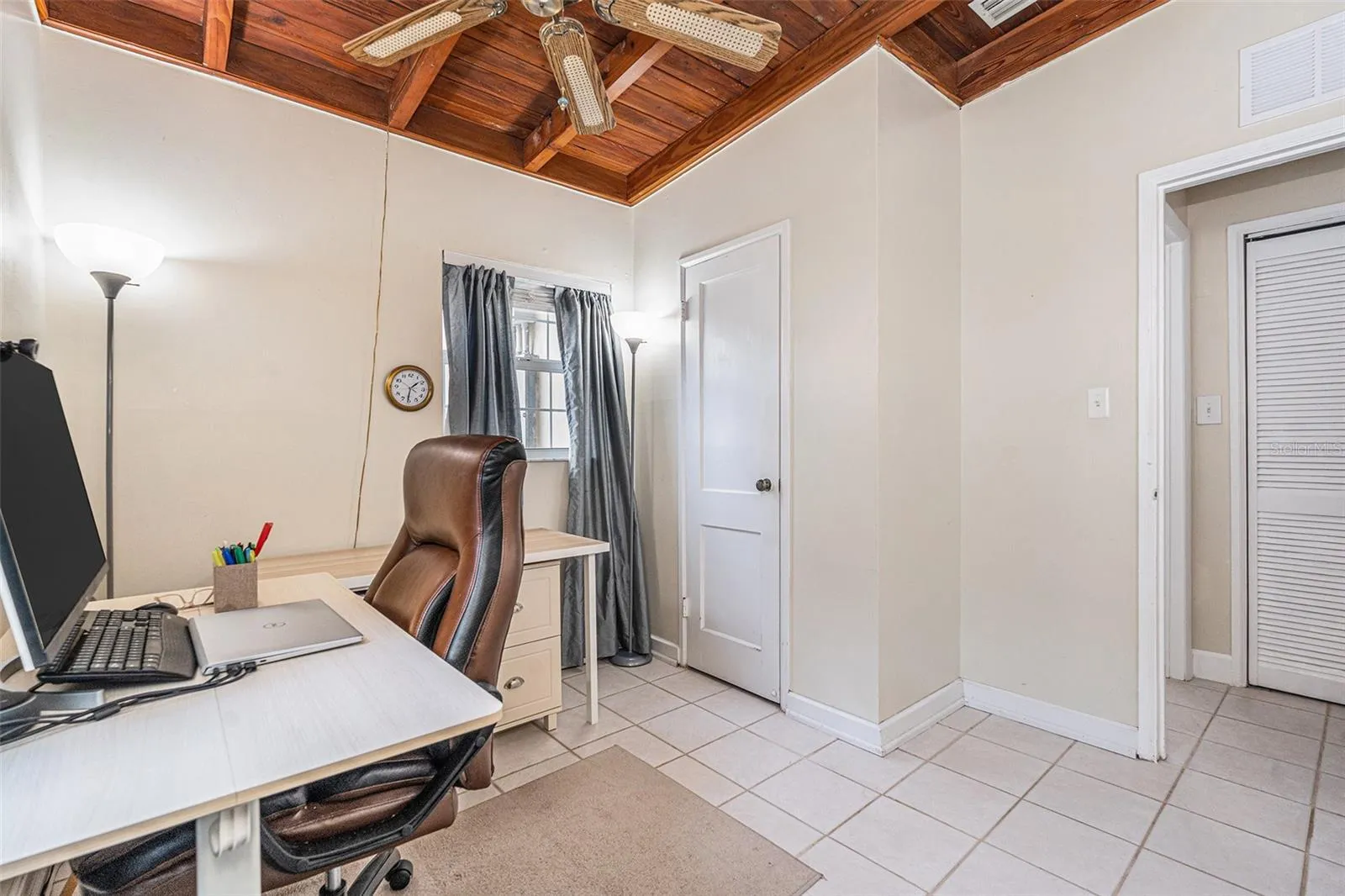 – Back on the market due to buyer’s financing – Welcome to your new 3-bedroom, 2-bathroom block home with underground utilities, located at 1533 Suffolk Street North! With recent upgrades including a new HVAC system with a 10 year warranty, outdoor brick patio with a removable cabana, stacked washer & dryer, hot water heater, tile grout replacement & much more! This well-maintained residence offers a blend of comfort, style, and practicality! When we step inside, we’re greeted by an open floor plan, elegant ceramic tile flooring and sophisticated 6-inch baseboards. The wooden ceilings & beams add an architectural touch, creating an airy and spacious atmosphere. On top of that, peace of mind comes easy with this home: it is NOT in a flood zone and has no HOA or CDD fees, offering true freedom!