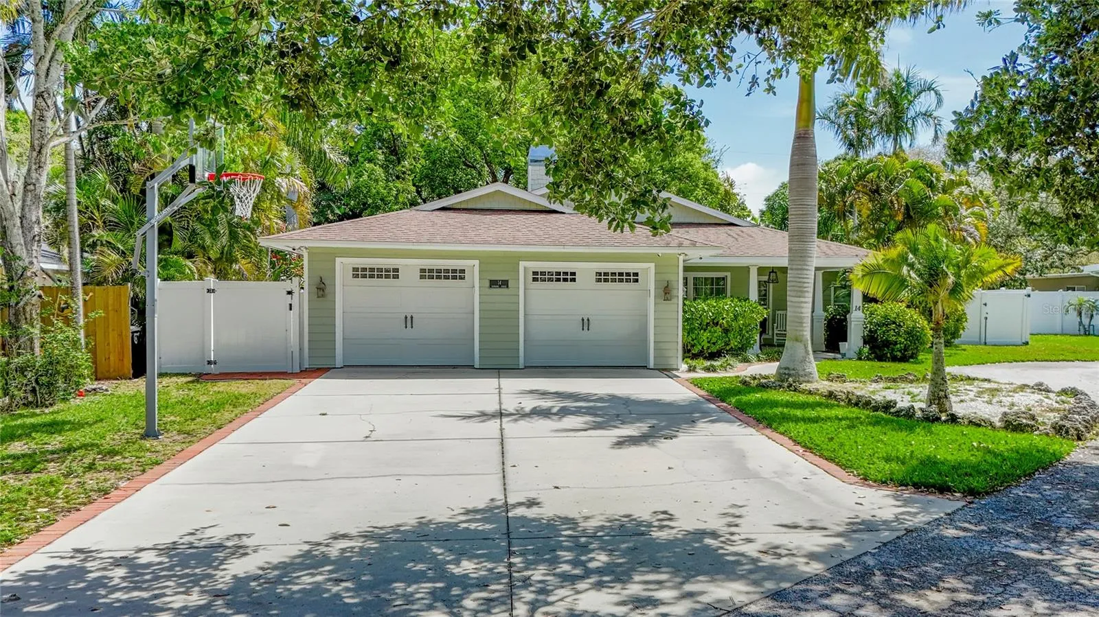 Live in the heart of Belleair and experience the charm of this beautifully updated 3-bedroom, 3-bathroom home offering over 2,200 sq. ft. of stylish living space. A welcoming front porch sets the tone, perfect for morning coffee or winding down in the evenings. Step inside to find soaring ceilings, rich wood floors, and a cozy wood-burning fireplace that anchors the open-concept living area. The gourmet kitchen is a true centerpiece, featuring custom wood cabinetry, sleek granite countertops, a double sink with a touch faucet, and high-end Frigidaire Professional Series appliances—all seamlessly integrated with bar seating for casual dining and entertaining. The thoughtful split-bedroom layout provides optimal privacy. The spacious primary suite offers plantation shutters, a walk-in closet, and a spa-inspired en-suite bath. Two additional bedrooms share an updated full bathroom, ideal for guests or family. Step outside to enjoy a private, fenced backyard shaded by mature oak trees, complete with a wood deck—perfect for outdoor dining or relaxing under the canopy. Ideally located just minutes from upscale shopping, top-rated restaurants, award-winning Gulf beaches, and two premier golf courses, this Belleair gem offers the perfect blend of comfort, convenience, and lifestyle.