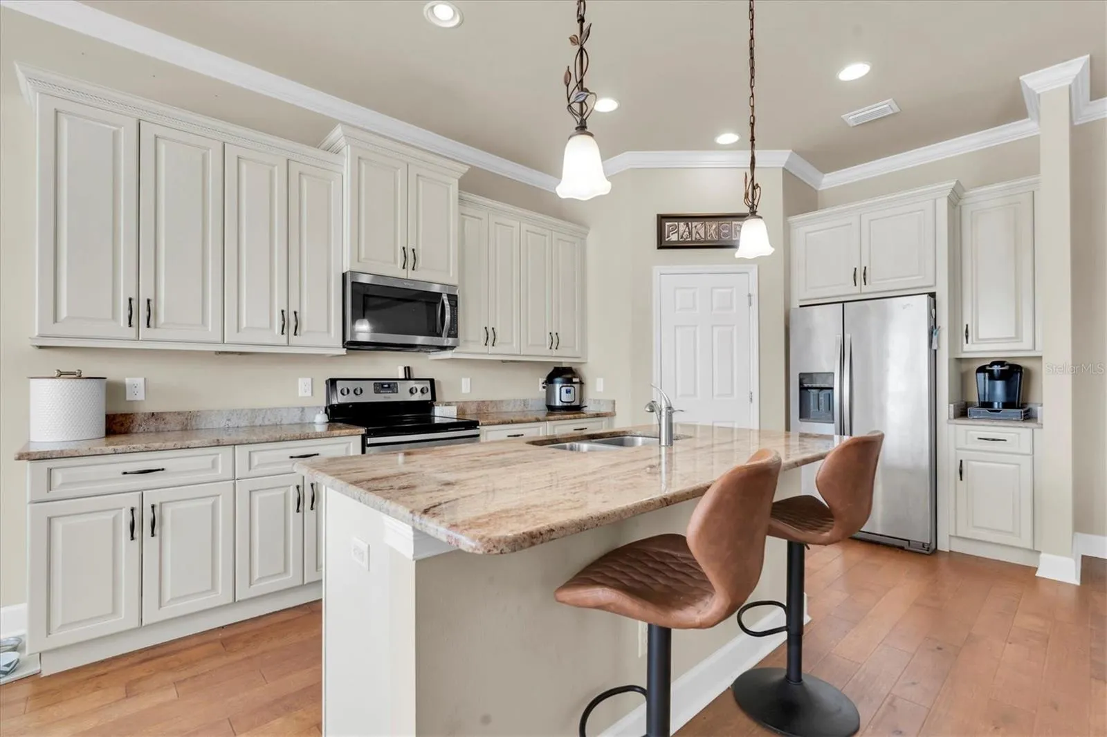 Beautiful newer construction 3/2 ½ bath home with an oversized 2 car garage in a highly desirable location in Seminole. High and dry here with no flooding in the area from the storms. Almost a ¼ acre lot with expansive parking and room for a pool. There is a stunning 22 foot entryway with a beautiful restoration hardware chandelier right when you enter the home. Great open floor plan with split bedrooms. There is a very large 15 x 14 separate formal dining room off of the entry way. Spacious and gorgeous open kitchen and massive living room area. Beautiful engineered hardwood flooring throughout the living areas. The kitchen has beautiful granite countertops, and ample amount of custom cabinets, a double sink, and a large walk-in pantry with tons of room for storage. Very open with a sizable cozy breakfast nook area with natural light from the windows. You will love the massive master suite with a very spacious bathroom with double sinks, an oversized separate soaking tub, and a separate water closet. The master bedroom boasts 2 walk-in closets with plenty of room for a king-size bed and additional furniture pieces. High vaulted ceilings throughout the living areas and primary bedroom with 14-16 foot high panned ceilings along with dual level crown molding throughout the living area and primary bedroom. High end craftsmanship throughout the home with a beautiful hand crafted column entry way into the formal dining room also with a beautiful restoration hardware chandelier. You can’t find a remodeled or updated home with features and vaulted ceilings like this. Covered outdoor patio area and layout makes a great entertaining home for friends and family. The oversized 2 car garage has a built-in ½ bath with additional built-in storage and an easily accessible walk-in attic with pull down stairs. Hurricane shutters that are easy to pop in all of the exterior are stored in the garage. Built in 2017 by the prestigious Deeb Family Homes and is under builder structural warranty through 2027. Insurance is a fraction of the cost with a newer build compared to a remodeled home. Perfect location with walking distance to all of the reputable Seminole schools. Just minutes to the beaches and a few of the best parks in the county- Walsingham, Lake Seminole, and Boca Ciega Millennium Park. Truly a perfect location with no flood insurance.