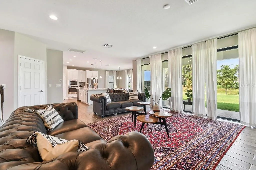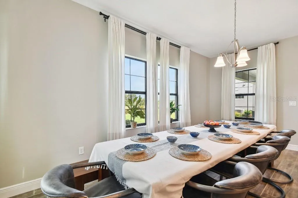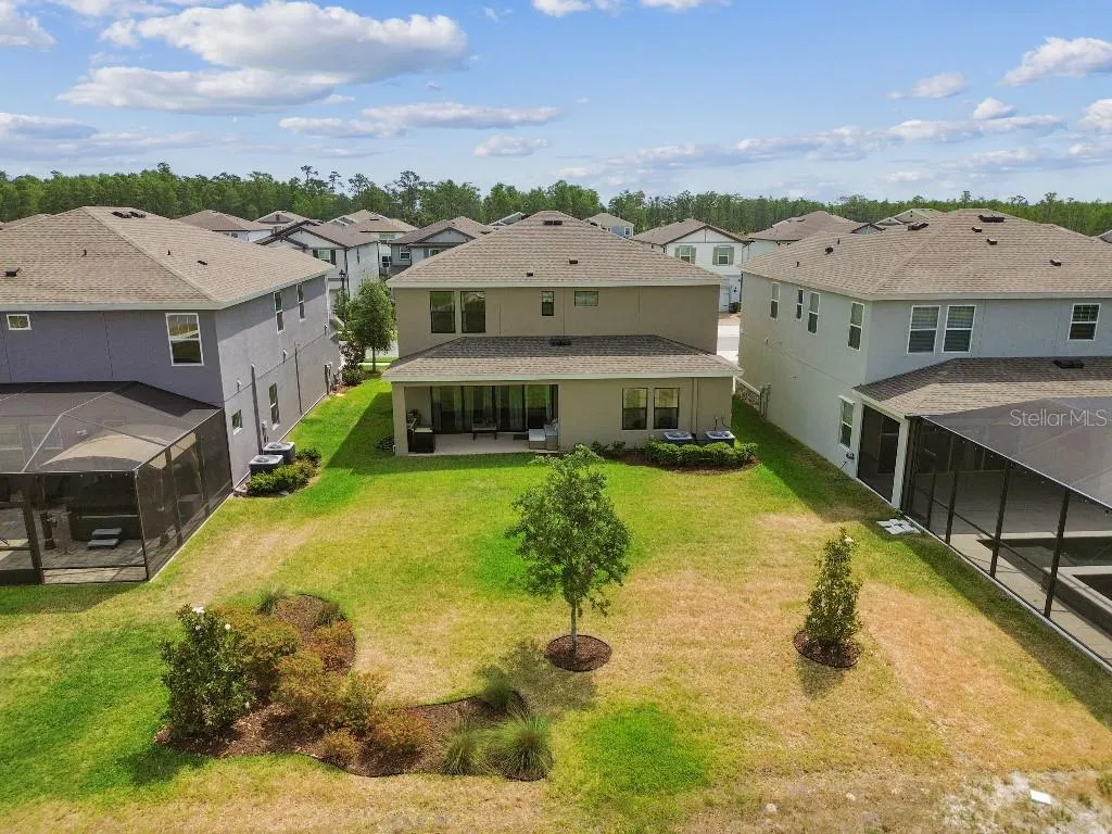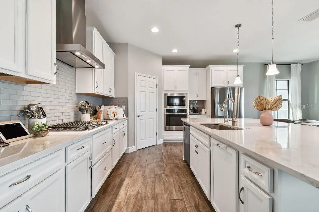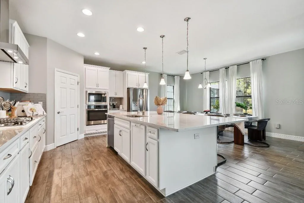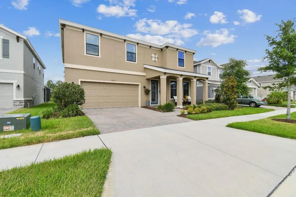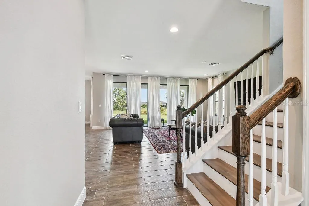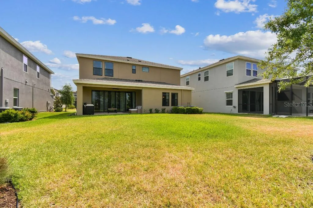 Welcome to this charming single-family home nestled in a tranquil neighborhood of Bexley! Step right in through the covered porch, through the modern front door into a bright foyer which leads into the great room. While passing through the foyer on your right you will find a powder room and a flex space perfect for a den/office or living room. Upon entry into the open-concept great room you are warmly greeted with breathtaking views of sprawling green lawn, a wetland conservation pond, birds and sunsets through the 4 large glass panel sliding doors. The great room seamlessly integrates into a large gourmet kitchen with, wall oven and wall microwave, range-hood, oversized white Corian quartz island and countertops along with white Timberlake cabinets providing plenty of storage and prep space. There is even more storage available in the adjoining walk-in pantry! In addition to the dining space at the kitchen island there is also a dining area adjacent to the kitchen. The spindled wood staircase leads you to the 2nd floor where you can retreat to the private master suite with a relaxing ensuite bathroom and oversized walk-in closet! On the 2nd floor you will also find 3 other bedrooms, a secondary bathroom, a laundry room and a bonus room perfect for an entertainment room or an office. Enjoy a pet-friendly, carpet-free house with upgraded wood-look tile on the 1st floor and wood flooring on the 2nd floor. Back on the 1st floor step outside the 4-glass slider door to your backyard oasis, ideal for gatherings or enjoying peaceful moments. With over 50 feet of yard, it’s large enough for a future pool! The lanai comes outfitted with a granite top stainless steel summer kitchen! The home is comfortably located within close distance from Bexley Elementary school! Bexley has lots of parks, trails for bikers and joggers, fitness stations, 2 club houses, café, gym, 3 pools, plenty of greenery and wildlife. There is a retail ‘hub’ with shops & restaurants, co-working spaces, a hotel, petrol pump, emergency, primary and specialty healthcare center, veterinary hospital, elementary and middle schools, day care centers, all conveniently located within the community. The owners love this community so much that they are moving into a preplanned customized home within Bexley! This immaculate 2-year-old Westbay home offers the perfect blend of comfort and convenience. Don’t miss out on the opportunity to make this your dream home!