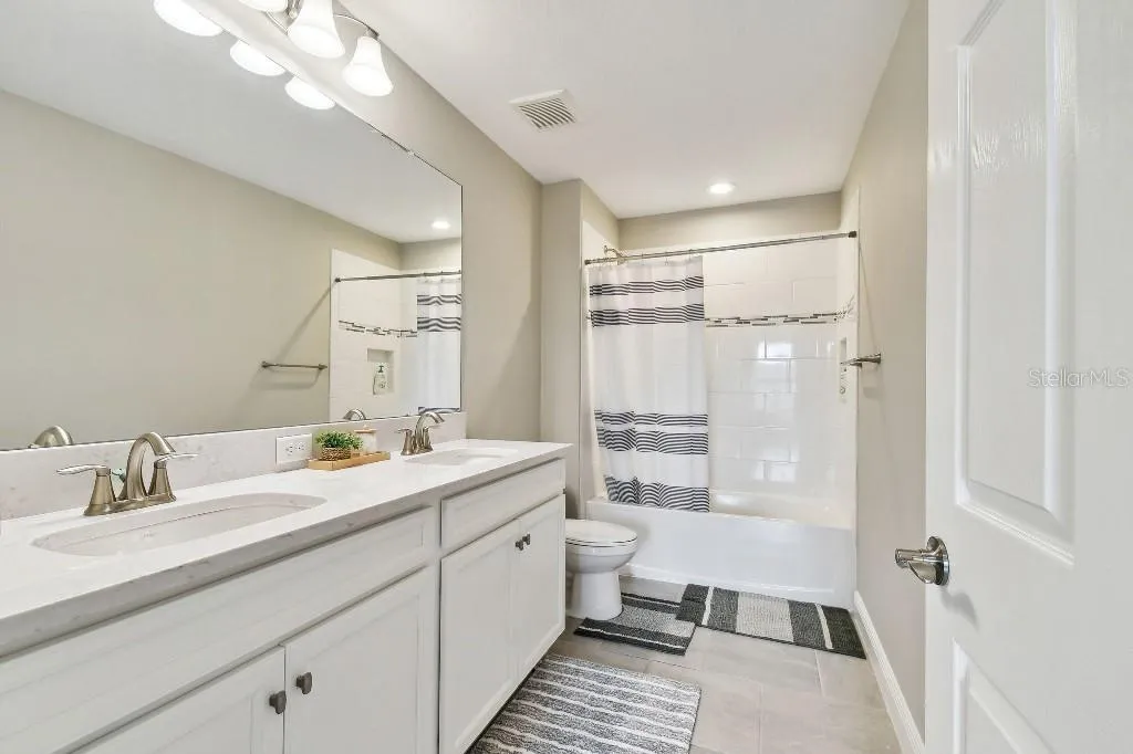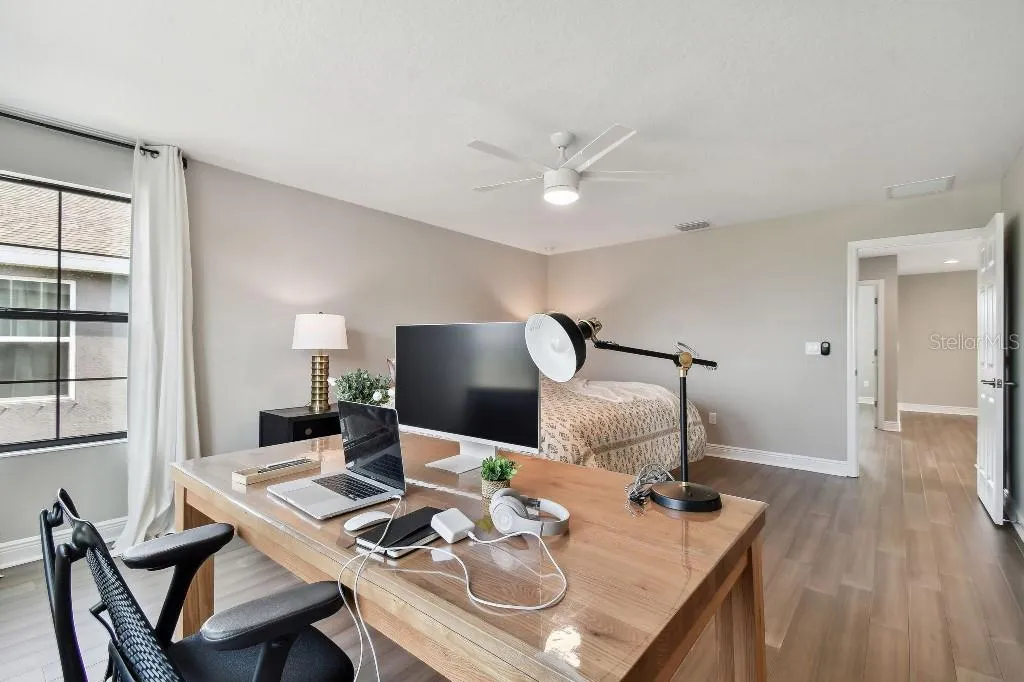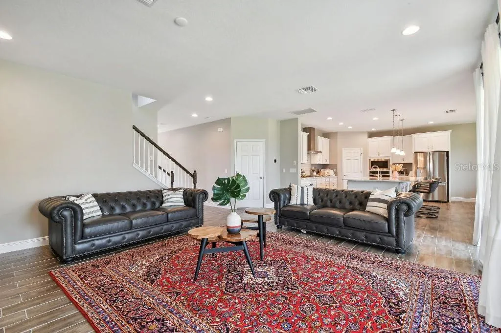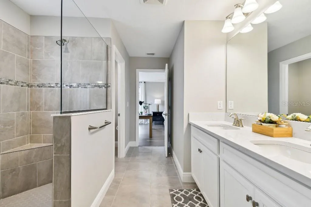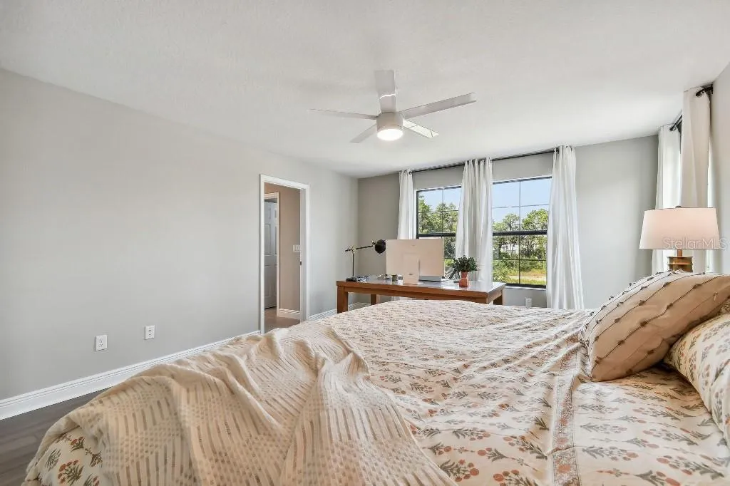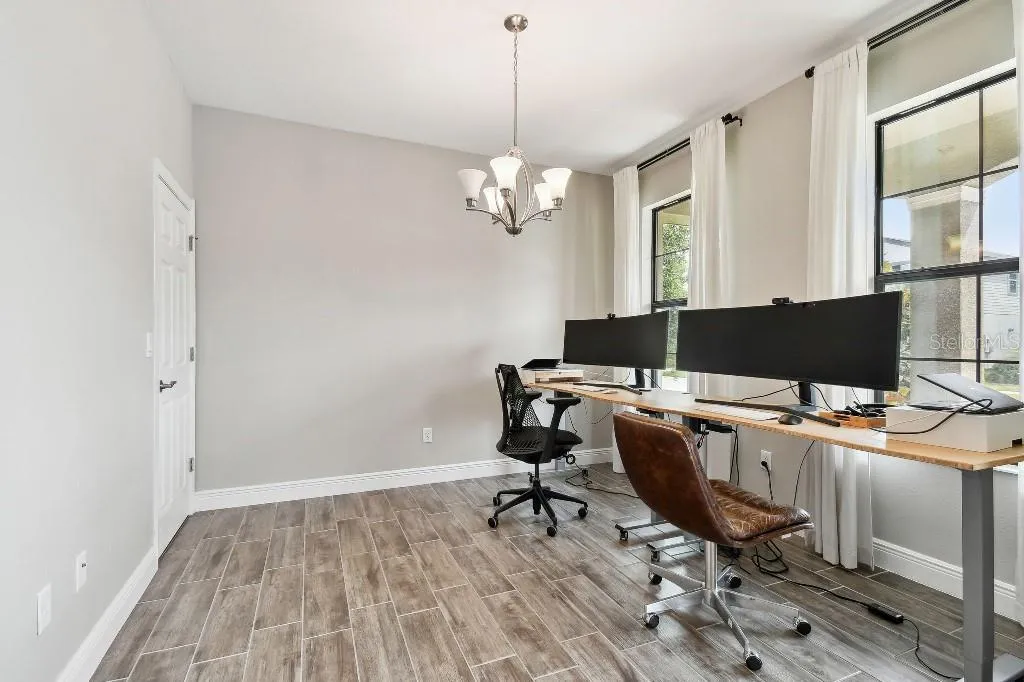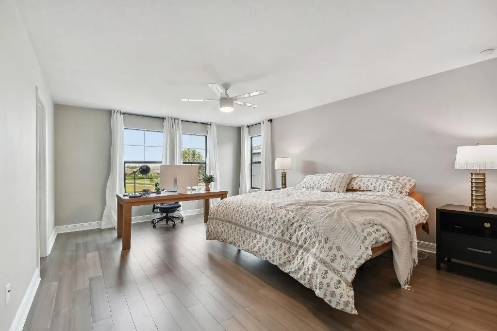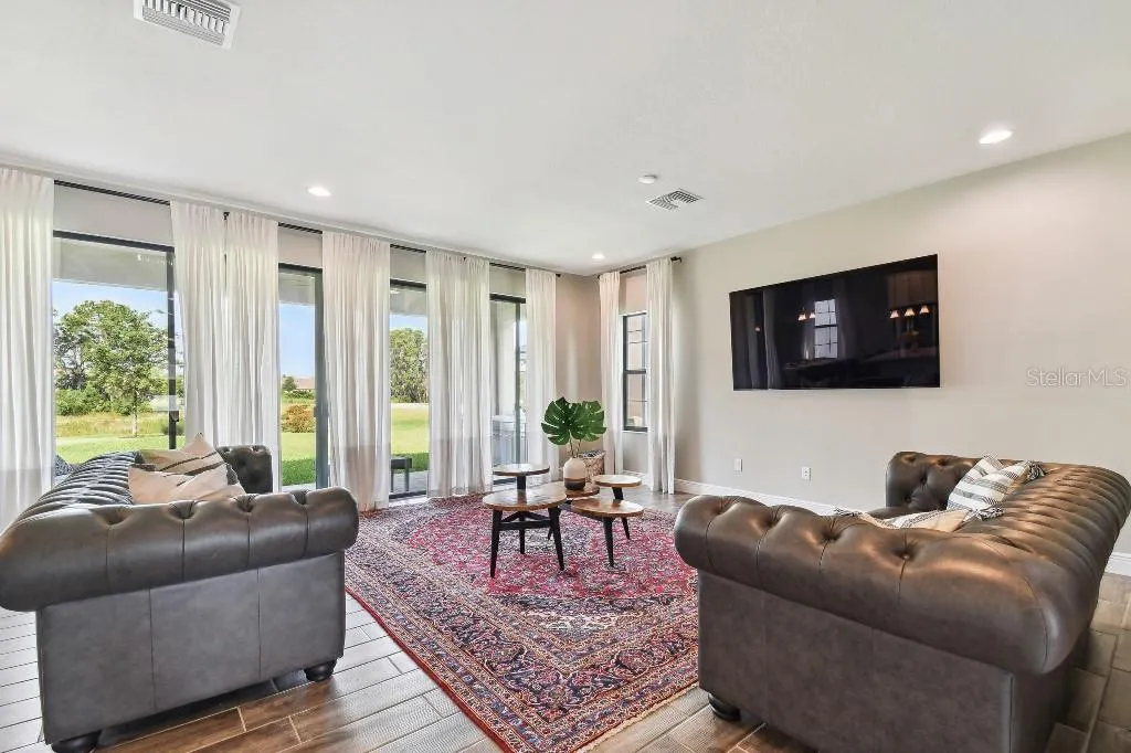 Welcome to this charming single-family home nestled in a tranquil neighborhood of Bexley! Step right in through the covered porch, through the modern front door into a bright foyer which leads into the great room. While passing through the foyer on your right you will find a powder room and a flex space perfect for a den/office or living room. Upon entry into the open-concept great room you are warmly greeted with breathtaking views of sprawling green lawn, a wetland conservation pond, birds and sunsets through the 4 large glass panel sliding doors. The great room seamlessly integrates into a large gourmet kitchen with, wall oven and wall microwave, range-hood, oversized white Corian quartz island and countertops along with white Timberlake cabinets providing plenty of storage and prep space. There is even more storage available in the adjoining walk-in pantry! In addition to the dining space at the kitchen island there is also a dining area adjacent to the kitchen. The spindled wood staircase leads you to the 2nd floor where you can retreat to the private master suite with a relaxing ensuite bathroom and oversized walk-in closet! On the 2nd floor you will also find 3 other bedrooms, a secondary bathroom, a laundry room and a bonus room perfect for an entertainment room or an office. Enjoy a pet-friendly, carpet-free house with upgraded wood-look tile on the 1st floor and wood flooring on the 2nd floor. Back on the 1st floor step outside the 4-glass slider door to your backyard oasis, ideal for gatherings or enjoying peaceful moments. With over 50 feet of yard, it’s large enough for a future pool! The lanai comes outfitted with a granite top stainless steel summer kitchen! The home is comfortably located within close distance from Bexley Elementary school! Bexley has lots of parks, trails for bikers and joggers, fitness stations, 2 club houses, café, gym, 3 pools, plenty of greenery and wildlife. There is a retail ‘hub’ with shops & restaurants, co-working spaces, a hotel, petrol pump, emergency, primary and specialty healthcare center, veterinary hospital, elementary and middle schools, day care centers, all conveniently located within the community. The owners love this community so much that they are moving into a preplanned customized home within Bexley! This immaculate 2-year-old Westbay home offers the perfect blend of comfort and convenience. Don’t miss out on the opportunity to make this your dream home!
