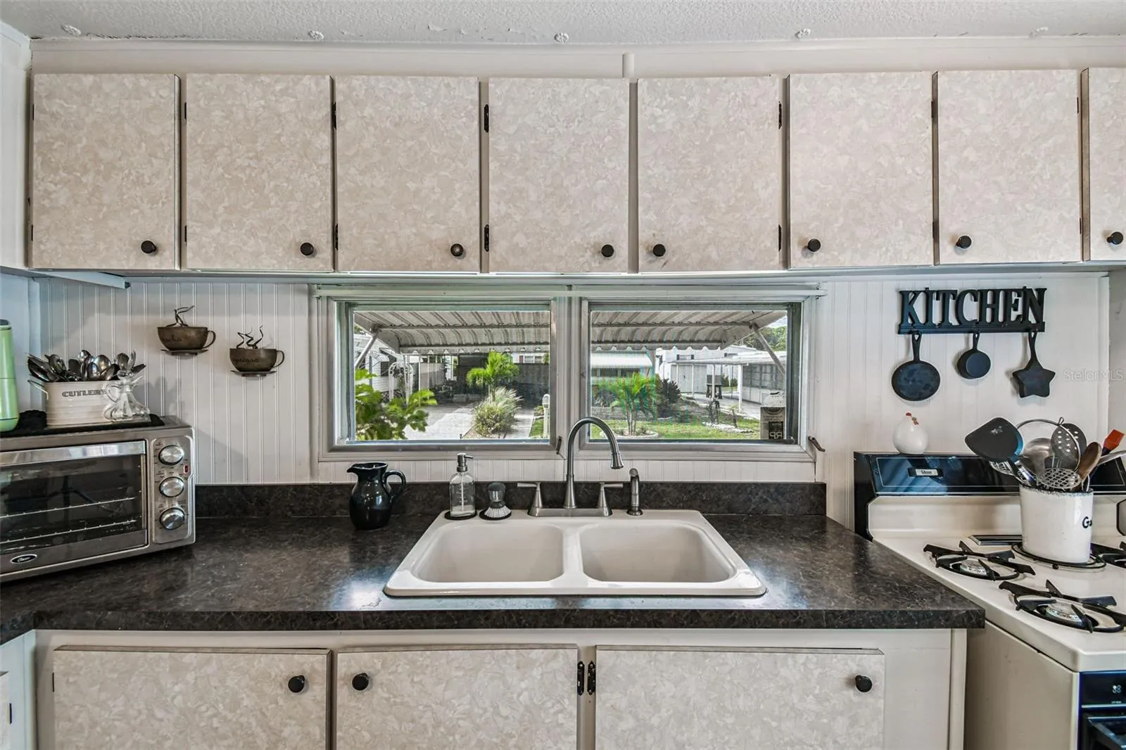 AFFORDABLE FLORIDA LIVING!!! This unit is FULLY FURNISHED and features 2 full bedrooms and 1 1/2 Bathrooms. Plenty of potential with the Large Florida room full of windows perfect for entertaing guest or relaxing in this ample space. Perfectly situated on a lot with no rear neighbors giving you added privacy and greenspace. The large carport can hold 2 vehicles and has a great outdoor space to grill and chill as well as 2 storage sheds for extra stroage. Inside you will find an open floorplan with an eat in space in the kitchen, built in shelving and and access to the Laundry room just off the hallway. The full bathroom with large tub and shower combo is large and has plenty of storage. The primary bedroom host an ensuite bathroom and a walk-in closet. Melody Gardens is an age-qualified park that is conviently tucked away that boasts community pool, hottub, shuffleboard, golf cart friendly and lots of activities for its residents. You will enjoy the close proximity to shopping, dining, short drive to our beautiful beaches and so much more. The low HOA of $175 montly includes water,sewer, trash and all the amenties. So don’t miss your opportunity to enjoy the relaxed Florida Lifestyle in this affordable furnished home.