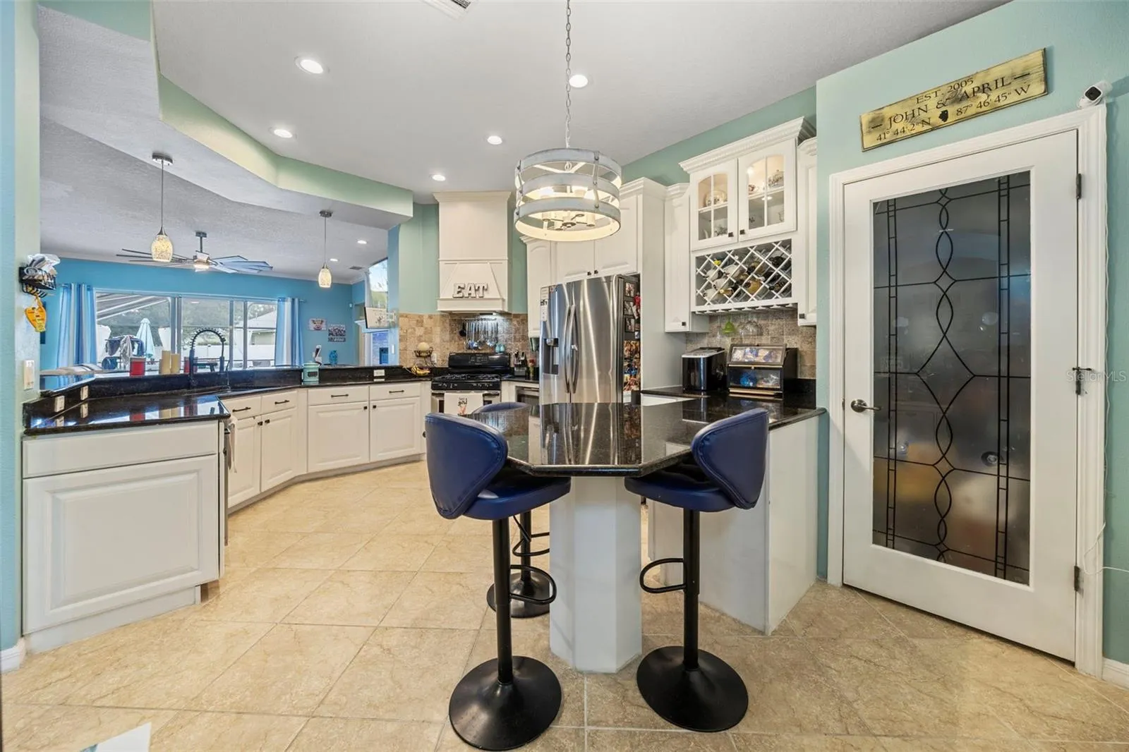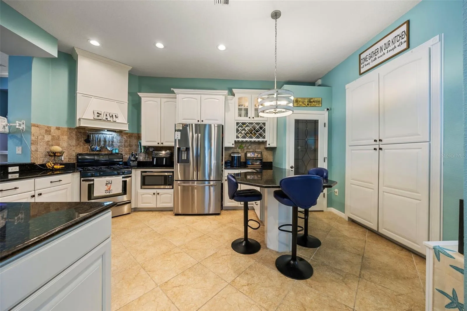 The chef’s kitchen is both functional and stylish, complete with stainless steel appliances, granite countertops, barstool seating, and a spacious walk-in pantry. Throughout the home, you’ll find beautiful tile and wood flooring—no carpet!
