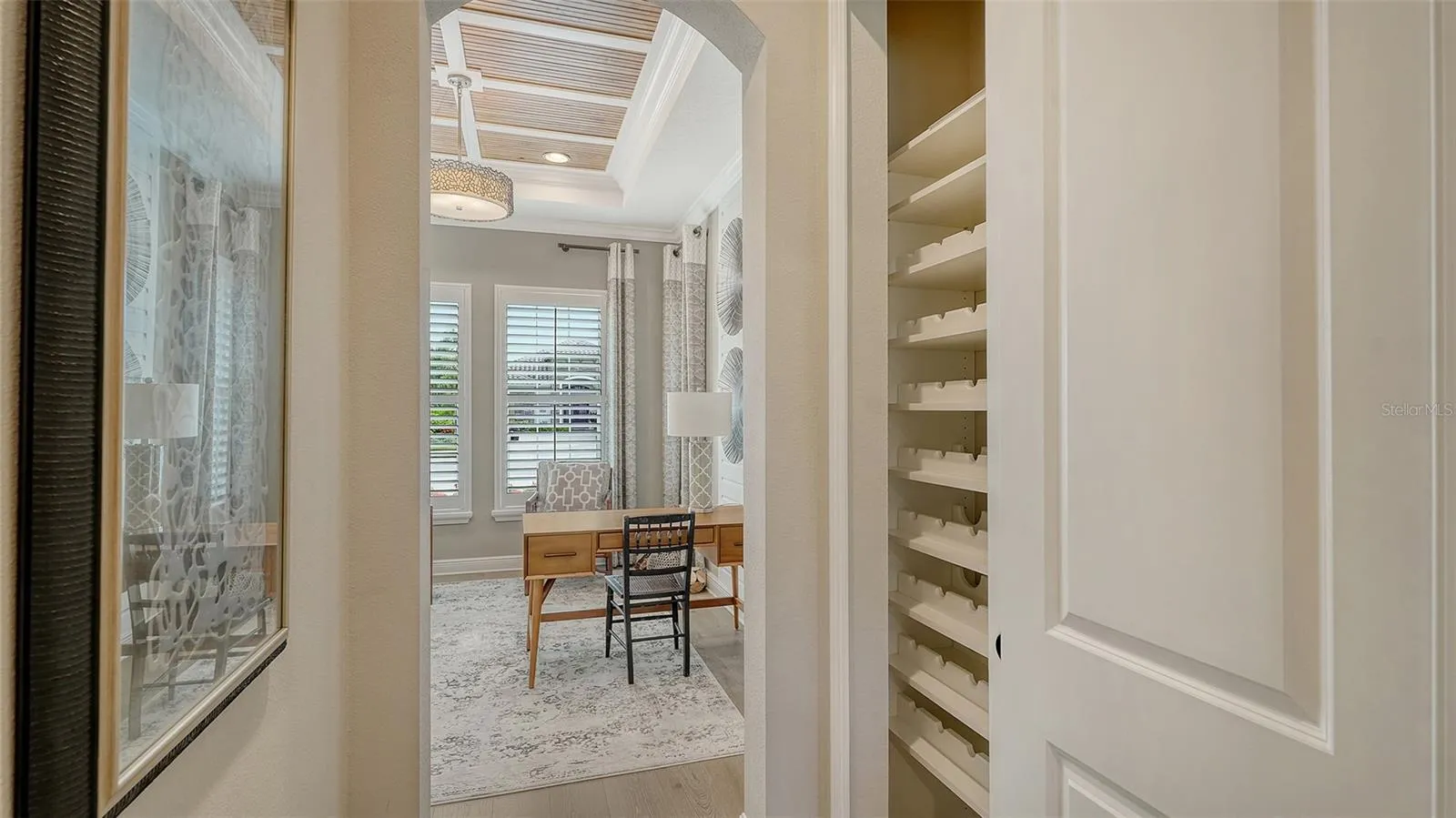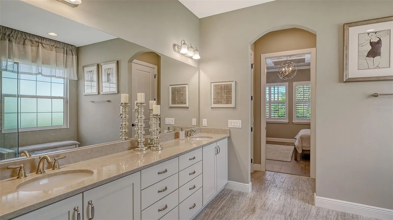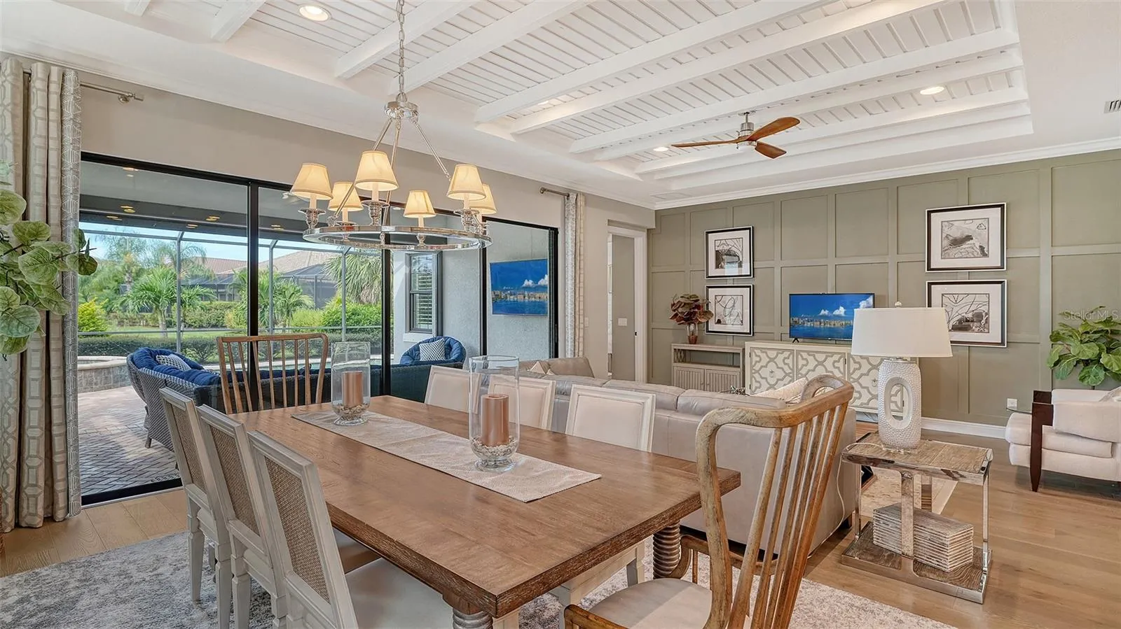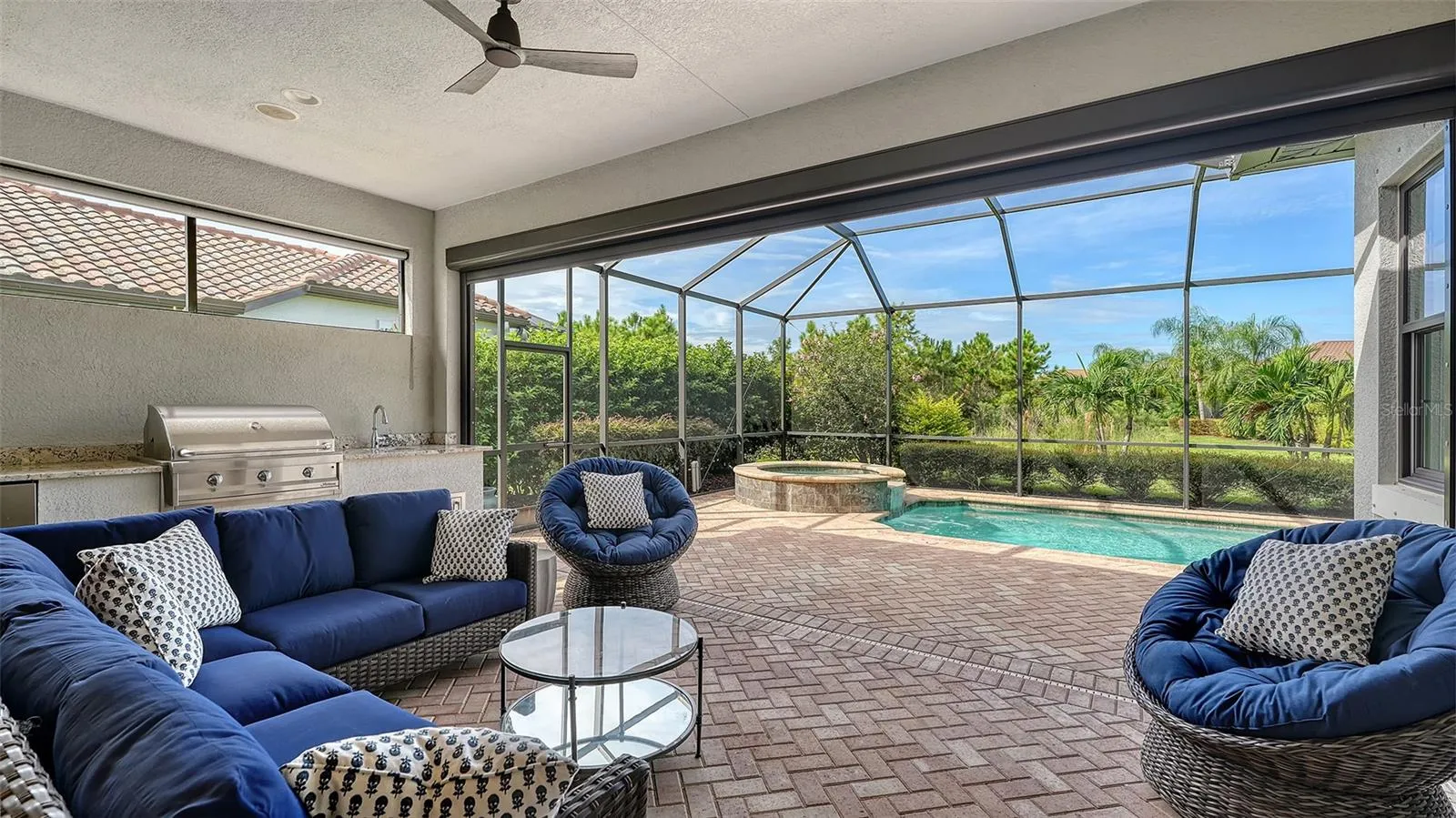 Under contract-accepting backup offers. Welcome Home to luxury living in the sought after community of Country Club East, in Lakewood Ranch! This FORMER MODEL home, WCI’s San Remo, delivers a plethora of design extras and upgrades that bring a modern, yet cozy feel to the OPEN FLOOR PLAN. Upon entering this 3 bedroom, 2 1/2 bath WITH STUDY home, you will notice the upgraded 8 foot doors throughout the home, upgraded 5 1/4″ crown molding throughout, recessed can lighting throughout main living areas, high ceilings throughout, light and soft cream shiplap on the walls in the study, the tongue and groove stained woodwork in the ceiling trays, the board and batten woodwork along the walls, soft Kingston Oak plank style engineered hardwood floors, and a collection of warm hues that bring harmony to this professionally designed home. Among the numerous upgrades, this home features luxury gas kitchen package with Kitchen Aid stainless steel appliances, granite dream leather countertops with flat polished edge, solid wood 42 inch upper cabinets, upgraded faucet with single bowl sink, and closet built ins included in the primary bedroom closet. Mature landscaping in the exterior of the home offers privacy and serene outdoor living. Lanai features include roman style pool and spa, as well as large covered space with outdoor kitchen featuring oversized barbecue grill with hood and refrigerator and sink. Covered area includes a closing sunshade which features privacy on the exterior, yet transparency from the interior. Country Club East residents have exclusive access to the TWO neighborhood amenity centers, The Retreat, which includes a fitness center, a resort style pool as well as a gathering space with a billiards room, and The Residents Club, which offers an additional pool as well as a volleyball court. Various memberships to Lakewood Ranch Golf & Country Club may be available, but are not mandatory. The Lakewood Ranch Golf and Country Club offers 72 holes of golf, 20 Har-Tru tennis courts, 20 pickleball courts, clubhouse, and The Lodge, which houses a bar and restaurant. Country Club East is a gated, mature neighborhood in the heart of Lakewood Ranch with sprawling green spaces and easy access to Waterside shops and restaurants, Lakewood Ranch Main Street, UTC Mall, world class beaches, and the SRQ Airport. Book your appointment today!