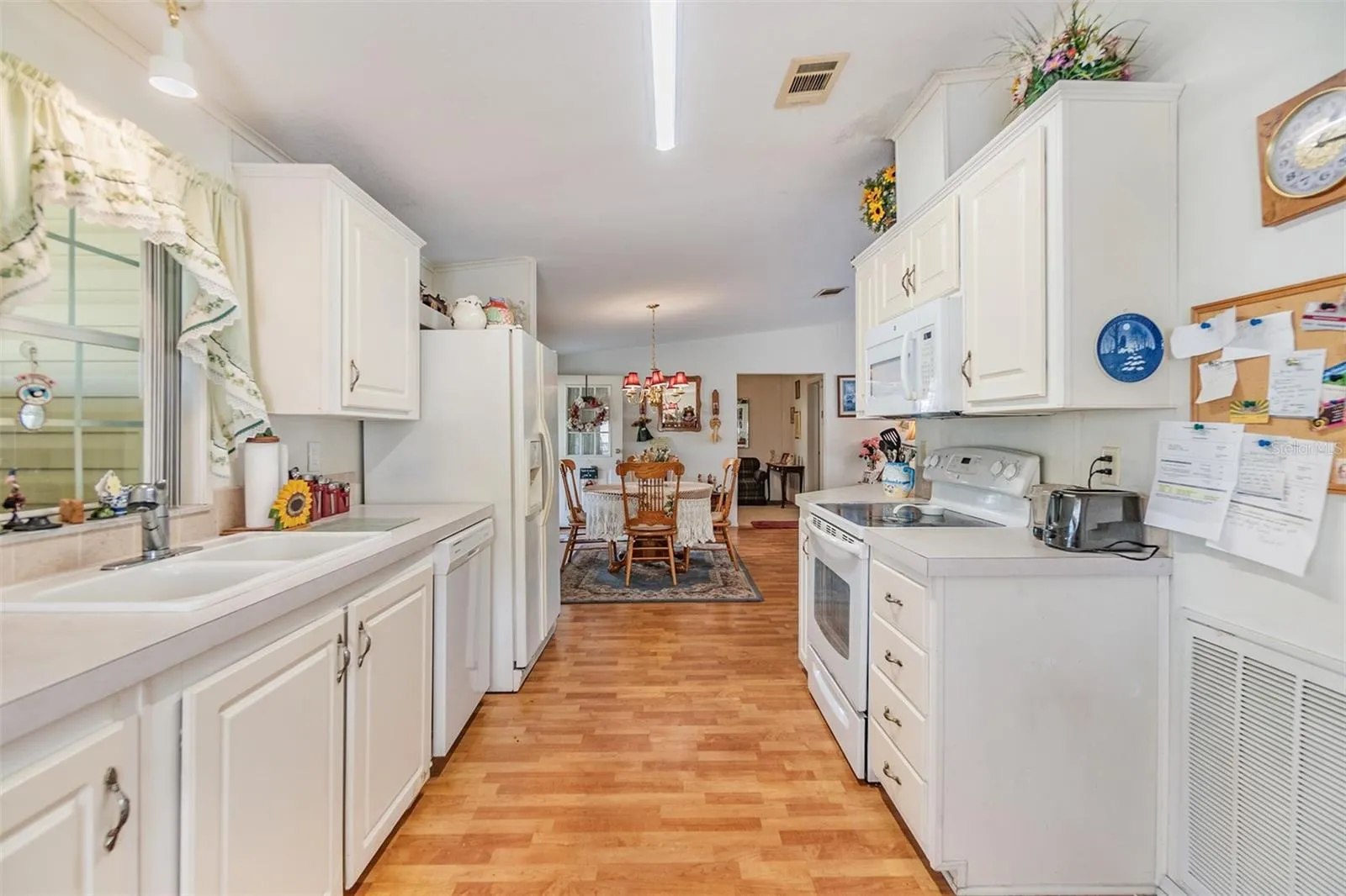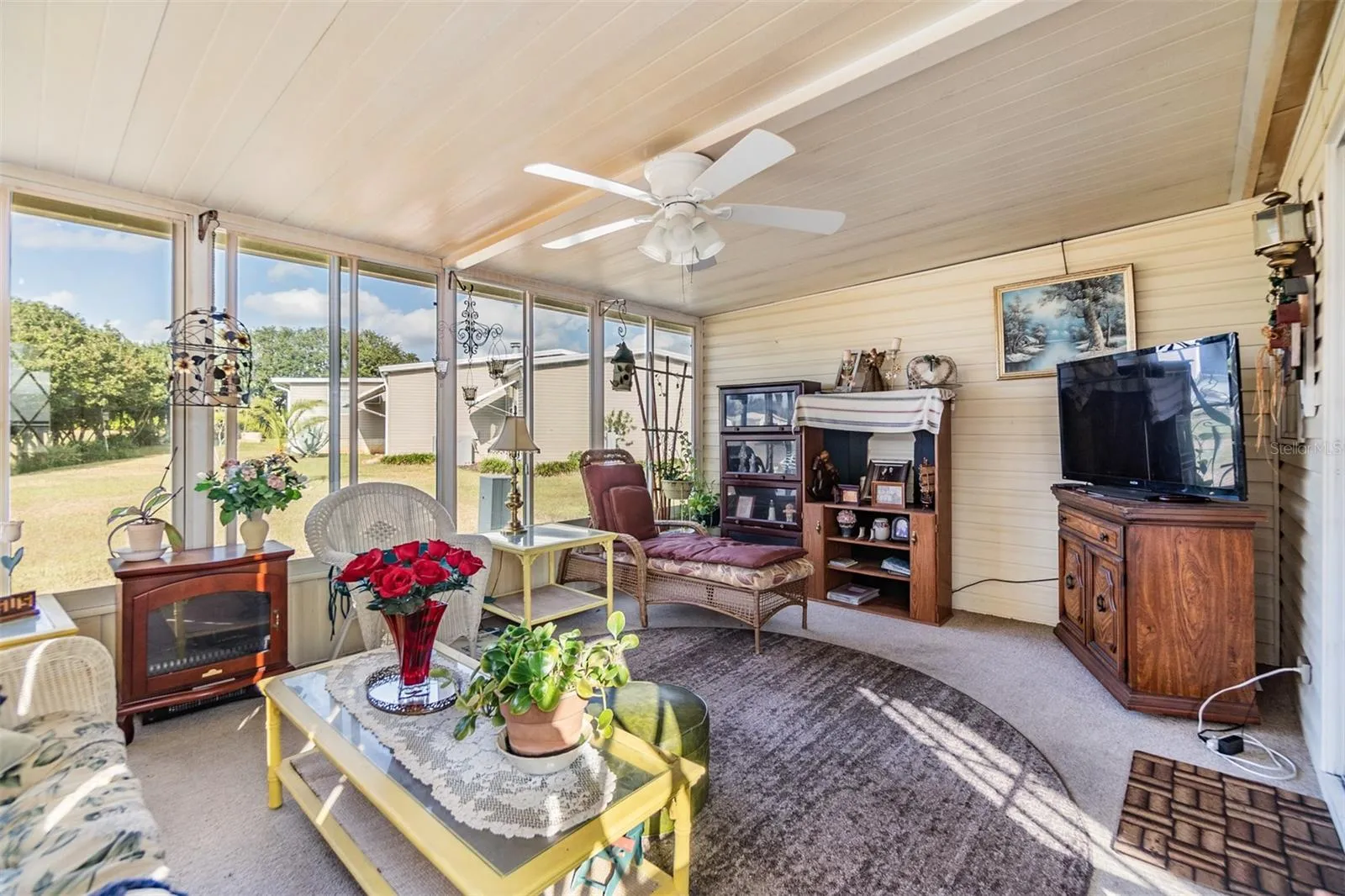 Discover your dream home in the beautiful gated community of Grand Horizons, where you OWN your land! This charming manufactured home features a host of impressive features, including a brand-new ROOF replaced in September 2021 for $7,500. The convenient galley kitchen is equipped with a 2024 dishwasher and disposal, along with a range and microwave that are just six years old. Enjoy peace of mind with a six-year-old AC unit, complete with a 10-year warranty. The home features inviting laminate floors in the kitchen, dining area, and foyer, enhancing its overall appeal. With two spacious bedrooms and a versatile den/office/flex room, there’s plenty of space to relax and entertain guests. The owner’s suite offers a luxurious experience with a wall-to-wall mirrored closet and a well appointed ensuite bath featuring a shower with a seat and a stylish tile floor. The eat-in dinette area connects seamlessly to an enclosed Florida room through sliding doors, creating a perfect space for entertaining. The washer and dryer convey with the home, accompanied by convenient shelving for additional storage. Step into the 12 x 14 sunroom, featuring sliding windows and AC, where you can bask in natural light with no rear neighbors to interrupt your tranquility. The guest bath has a charming skylight and a deep linen closet for added convenience. Some furnishings are negotiable, allowing you to move right in! Enjoy the Resident owned amenities in this 55+ Community: Heated Pool, hot tub, Clubhouse with Commercial kitchen, Library with books, games, movies and puzzles, Craft room for sewing, quilting and crafting, shuffleboard, darts, billiards, cornhole, bocce, planned activities, potluck dinners, onsite entertainment, travel excursions and events! This is a fantastic opportunity to own a piece of paradise in Grand Horizons! CALL TODAY!