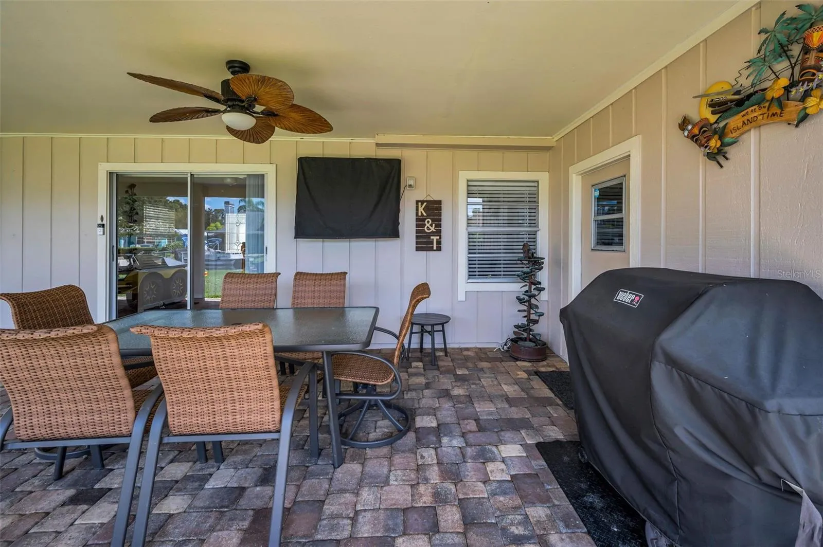 Enjoy true Florida living with a screened-in lanai accessible by sliders from both the primary bedroom and the living room, offering a seamless flow to the outdoors. Beyond the lanai, the backyard patio overlooking Lake Tarpon creates a wonderful gathering space for family and friends, perfect for lakeside get-togethers, sunset dinners, or quiet mornings with coffee.