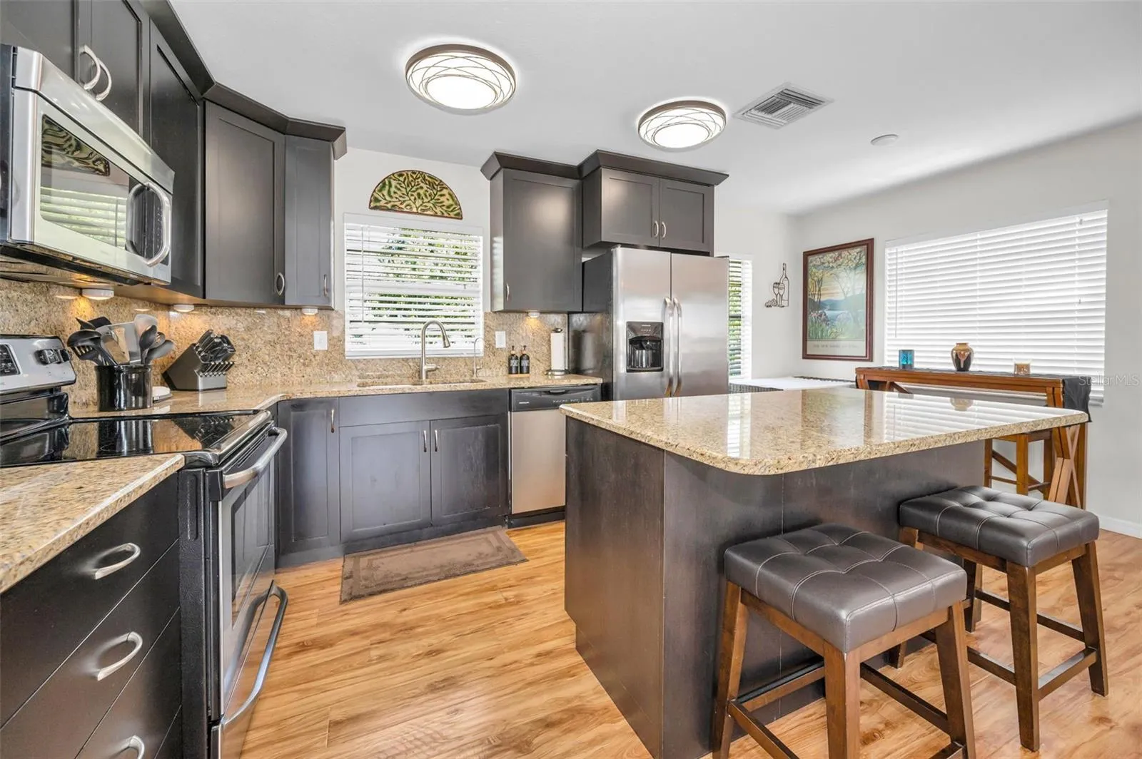 - Ceiling Fans(s), Open Floorplan, Walk-In Closet(s), Eat-in Kitchen, Kitchen/Family Room Combo, Stone Counters