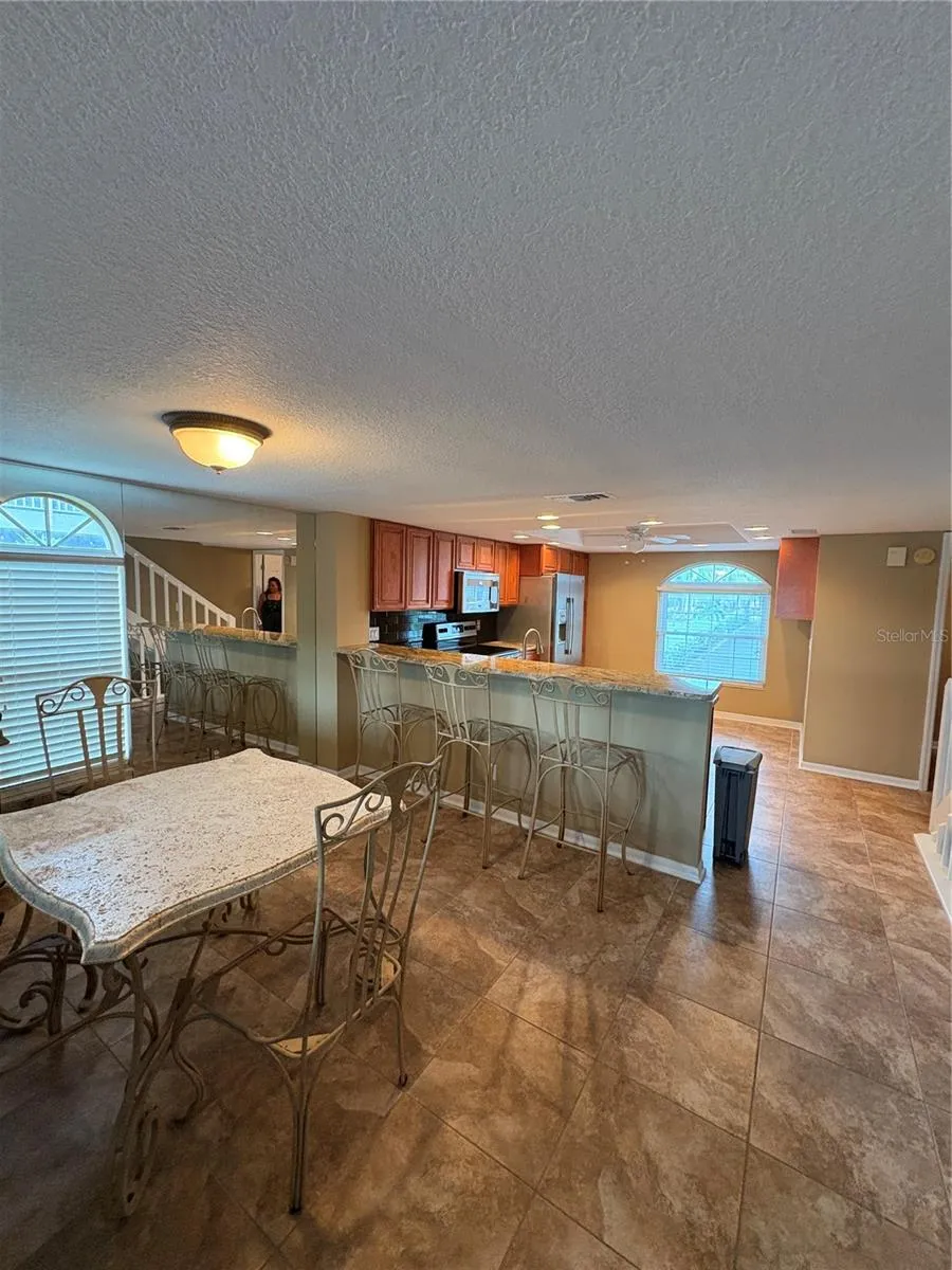 - Ceiling Fans(s), Crown Molding, Open Floorplan, Thermostat, Walk-In Closet(s), Living Room/Dining Room Combo, Eat-in Kitchen, Kitchen/Family Room Combo, Window Treatments, High Ceilings, Solid Wood Cabinets, Solid Surface Counters