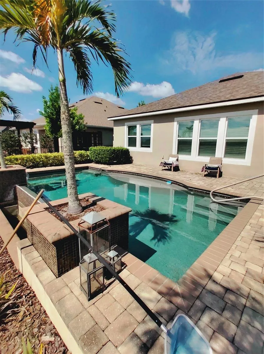 One or more photo(s) has been virtually staged. Welcome to Harmony Community! This beautiful two bedroom two bath home with Den / office space and private Infinity pool on an oversized lot is a gem. Across the street from clubhouse, fitness center and community resort style pool! This home was a Mattamy model home and has been meticulously maintained by one owner. This house has a new roof built in a month ago and a new air conditioner giving the buyer peace of mind with warranties. This home is conveniently located in the heart of Lakewood Ranch close to i-75 and State route 70.Walmart 2 miles away, Publix shopping centers, Starbucks , Wendy’s,Chipotle,LA fitness all within a mile. This community has tons of biking trails beautiful water fountains in ponds. There is easy transit to Anna Maria Island, St Pete Beach and Siesta key rated number four in the world and number one in the US!