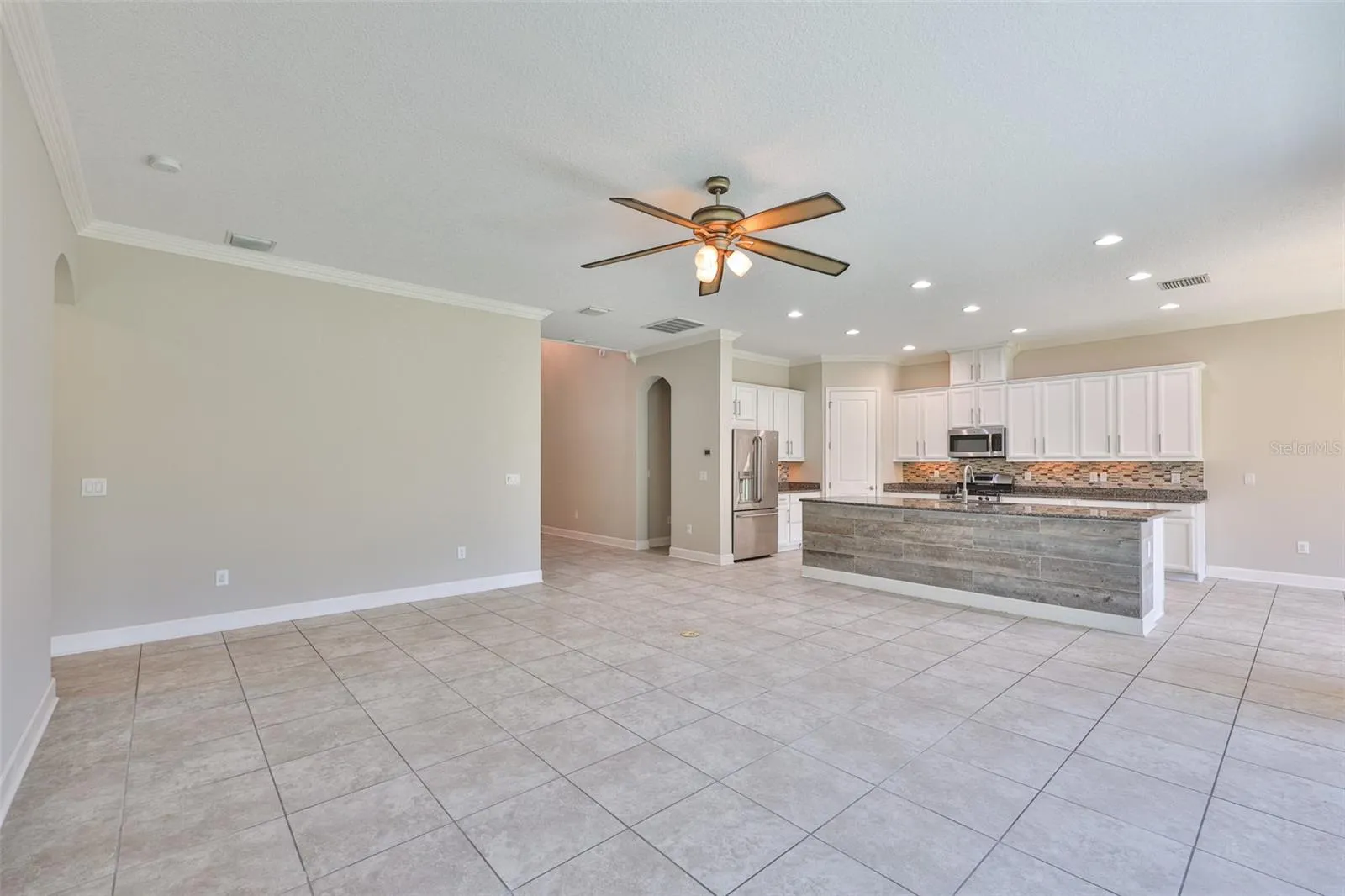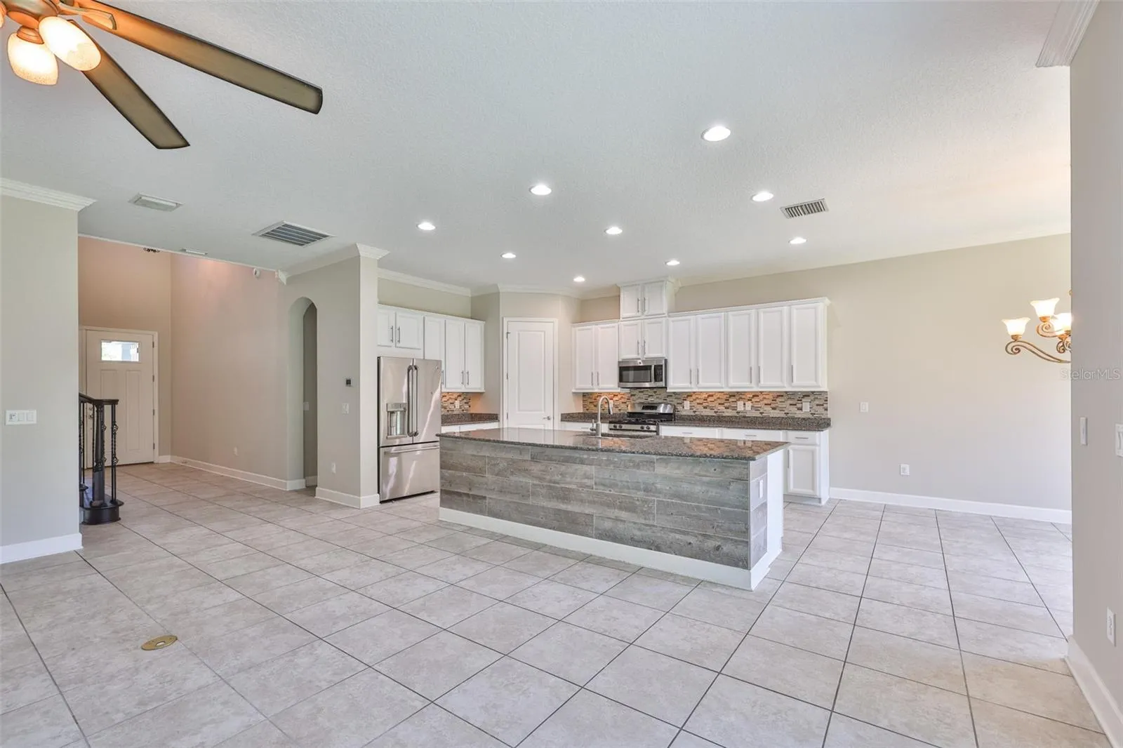 - Ceiling Fans(s), Crown Molding, Open Floorplan, Walk-In Closet(s), Kitchen/Family Room Combo, Primary Bedroom Main Floor, High Ceilings, Solid Wood Cabinets, Solid Surface Counters, Central Vaccum