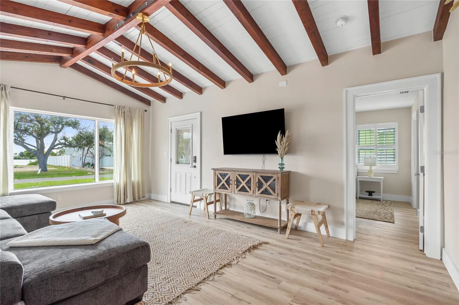 Taken down to the studs and completely rebuilt, everything is new: HVAC, plumbing, electrical, 2021 roof, 2021 Generac generator, impact-rated hurricane windows and doors, plus brand-new appliances, luxury vinyl plank flooring, and all-new cabinetry and counters throughout. Two driveways provide the kind of parking that’s scarce on the beaches.