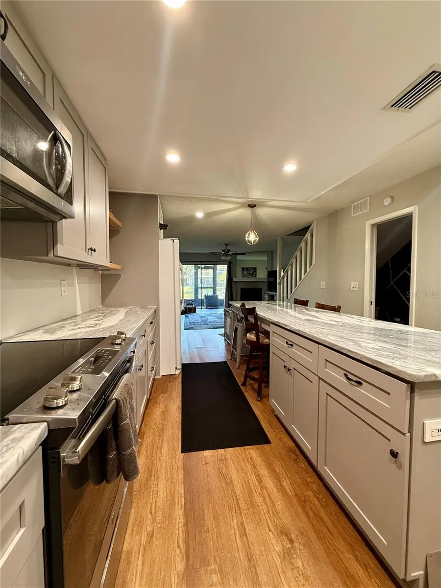 - Ceiling Fans(s), Open Floorplan, Thermostat, Kitchen/Family Room Combo, Stone Counters