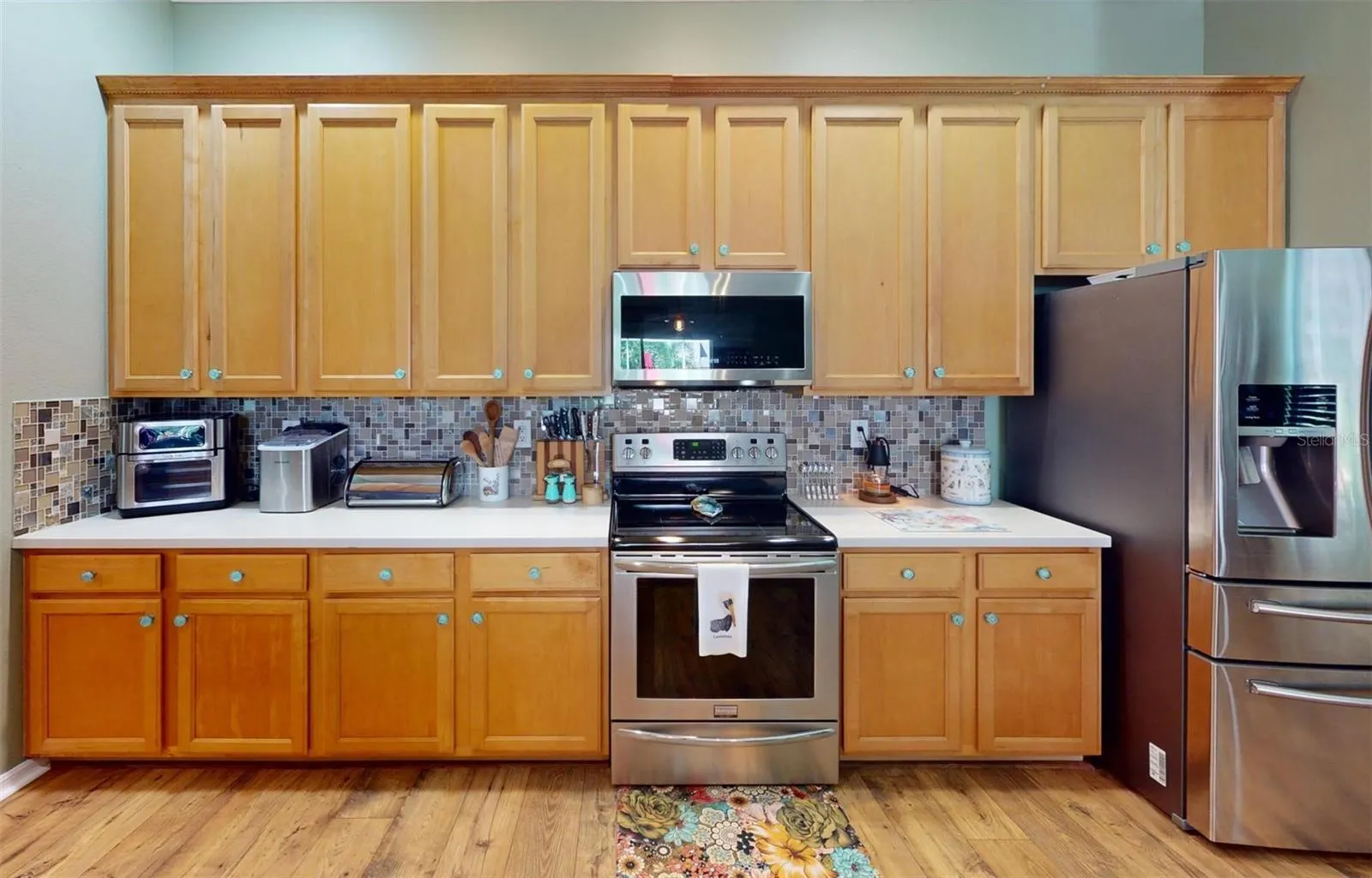 Welcome to this beautifully updated 1,974 sq. ft. retreat, designed for comfort, style, and Florida living at its finest. Step inside to find fresh professional interior paint (2025), elegant scratch-resistant wood flooring, and a bright, open layout. The gourmet kitchen boasts 42” maple cabinets with crown molding, custom lighting, stainless steel appliances, convection/induction range—perfect for any home chef.