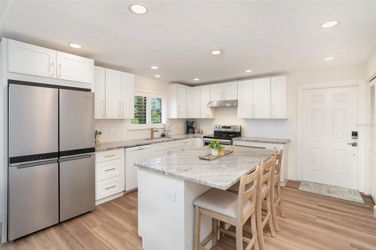 If you are looking for the perfect hideaway on ANNA MARIA, then this is the ONE! Located mid-island in Holmes Beach, this thoughtfully renovated 2-bedroom and 2-bath condo offers the perfect blend of privacy and island living. Located in the highly desired West Bay Point & Moorings community which is tucked away in a park-like setting with tropical grounds. Enter the gate into your own courtyard patio space, then step inside to high ceilings and an open concept living space with abundant natural light. The gorgeous kitchen has a sunlit window, beautiful granite counters, modern cabinetry, and sleek finishes with new plank vinyl flooring throughout. There is plenty of space to entertain family and guests at the breakfast bar, dining table, living room or in the brightly lit sunroom. The lovely primary bedroom has an ensuite bath and an oversized walk- in closet. There is expansive storage/closet space and a separate laundry room conveniently located off the front entryway. The guest bedroom has access to the private front patio. which is great for morning coffee. Slide open your back doors to the quiet and peaceful patio which overlooks the community heated pool with spa. Full of resort-style amenities, take your pick. WestBay offers tennis & pickleball courts. a grill patio, common-area dock and benches. From the available storage racks slip your kayak & paddleboard right into the Bay. In addition to common area parking, a coveted rare carport spot is included. This unit is 12 ft above sea level and had NO damage or water intrusion from last year’s storms. Maintenance free with updated everything, new roofs on all eight association buildings were also installed in March of this year. The HOA includes cable, high speed Internet, water and sewer. Monthly rentals are also permitted. You can also stroll over right next door to the expansive Holmes Beach public amenities. These include a boat ramp, tennis & pickleball courts, outdoor fitness center, dog park, basketball court, skateboard & ballpark and the community playground & park. A 5-minute bike ride gives you access to Anna Maria’s pristine beaches, shops, and dining. Just pack your bags, this absolutely pristine unit will come turnkey furnished. It has been designer-inspired with a beautiful neutral palette that evokes modern coastal living. Whether you are seeking a full-time island residence, vacation escape, or investment opportunity, this hidden gem delivers island living at its finest.