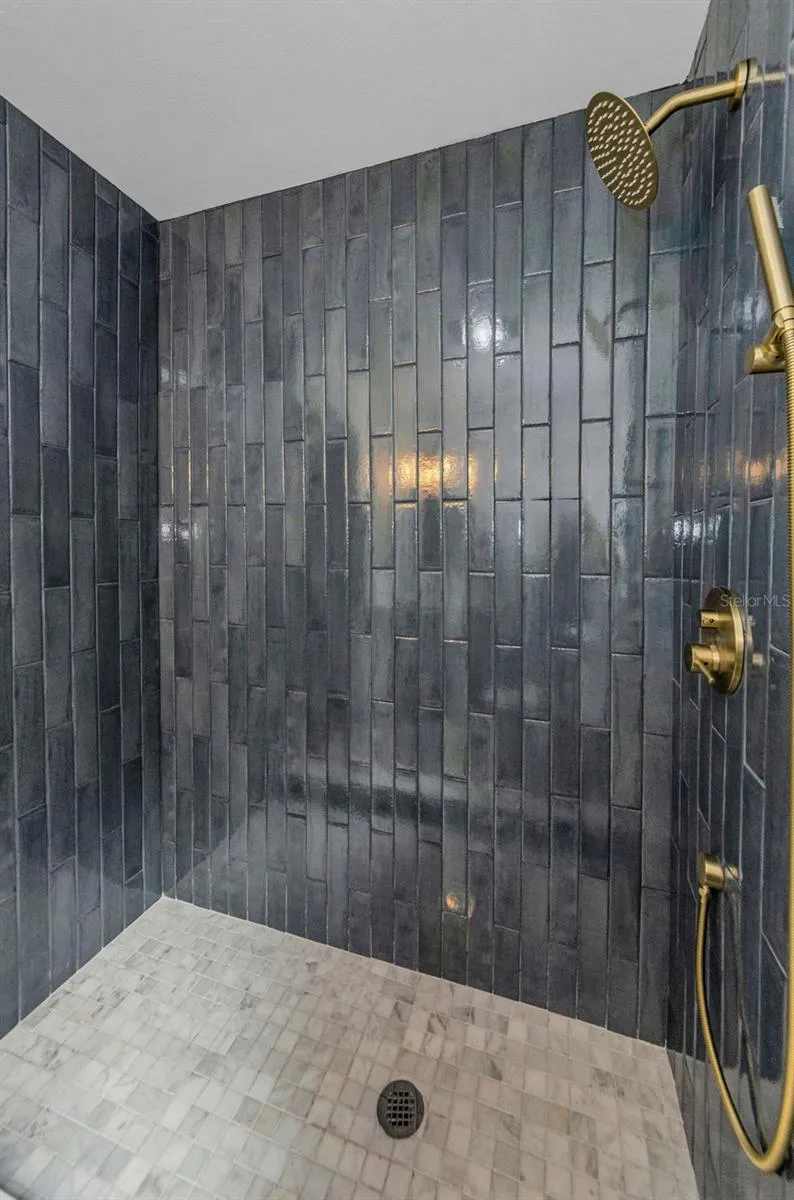 The primary suite offers a spacious retreat, complete with an ensuite bathroom boasting a new vanity with quartz top, new lighting and mirror, a marble floor, and a stunning shower surround with antique brass fixtures and designer tile. Bedrooms 2 and 3 are tucked away in a split plan for privacy, with the guest bath equally impressive—showcasing a new vanity, quartz countertop, elegant tilework, and marble flooring.