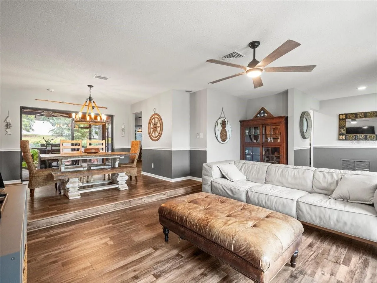 Welcome to your dream home in the highly sought-after community of Westlake Village in Palm Harbor. This beautifully maintained 4-bedroom, 3-bathroom residence with a 2-car garage sits on an oversized .33-acre lot surrounded by picturesque rolling hills and a fully fenced backyard, offering both privacy and scenic charm. As you step through the elegant double-door entryway, you are greeted by stunning newer luxury vinyl plank flooring that flows seamlessly throughout the home. The gourmet kitchen is a showstopper, featuring a spacious island with quartz countertops, perfect for both meal prep and casual dining. The open-concept design connects the kitchen’s eat-in area to the inviting family room, making entertaining effortless and enjoyable. A separate formal dining room and living room provide multiple spaces for relaxation and gatherings. The split-bedroom floor plan ensures privacy for the generously sized primary suite, which includes dual walk-in closets, sliding glass doors that open to the lanai, and a recently renovated ensuite bathroom adorned with marble finishes and updated fixtures. Two additional bedrooms share a convenient Jack and Jill bathroom, while the main bath has been tastefully updated with granite counters and soft, modern tones. Multiple sliding glass doors lead to an expansive screened lanai offering abundant space for entertaining, relaxing, or grilling. Beyond the lanai, the large backyard features a wooden deck ideal for a firepit or outdoor lounge area, creating the ultimate setting for evening gatherings. Residents of Westlake Village enjoy exceptional amenities including a community pool with lap lanes, a clubhouse, park, picnic areas, walking and fitness trails, as well as tennis, pickleball, and basketball courts. With its blend of luxury, comfort, and community charm, this home truly has it all. Don’t wait—call your real estate professional today to make this stunning Palm Harbor property your new home.