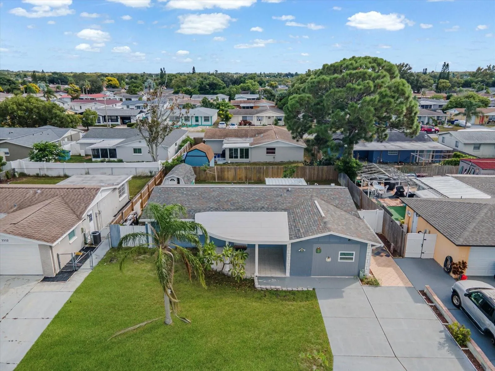 Immaculate and tastefully updated single-family residence featuring 2 bedrooms, 1 bathroom, and an inviting open floor plan. Porcelain tile flows seamlessly throughout the main living areas, creating a clean and modern aesthetic. The spacious kitchen offers ample counter space, newer appliances, a breakfast bar, and French doors that open to a covered screened patio with an additional pavered area—perfect for outdoor dining and entertaining. The fully fenced backyard provides privacy and includes a large storage shed. Additional highlights include: Generously sized laundry room with washer & dryer included, Garage conversion into an in-law suite with its own kitchen, bathroom, and standing shower (garage door remains for easy conversion back). Roof (2016), Main HVAC (2017), Tankless water heater (2023), Updated windows (2024), Updated electrical panel & programmable thermostat. Being sold furnished for added convenience. Ideally located close to parks, beaches, restaurants, hospitals, and recreational facilities, this home combines comfort, functionality, and modern upgrades—ready for its new owner to move right in!