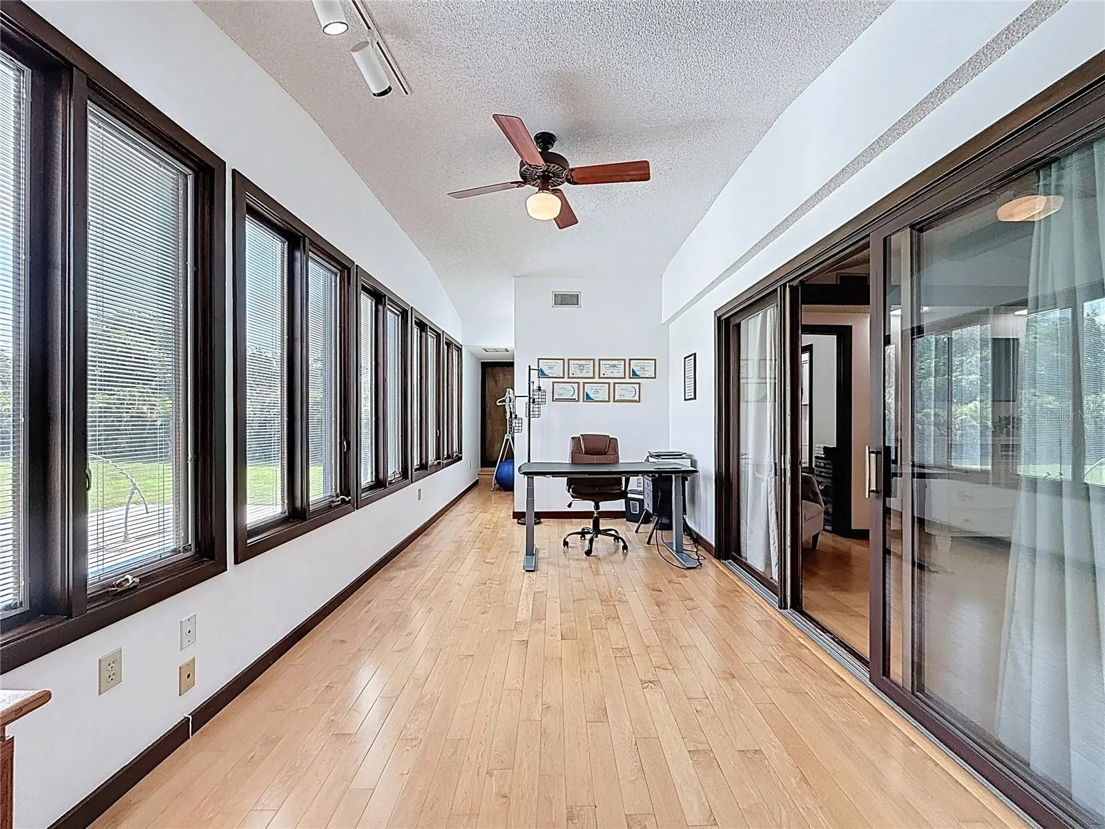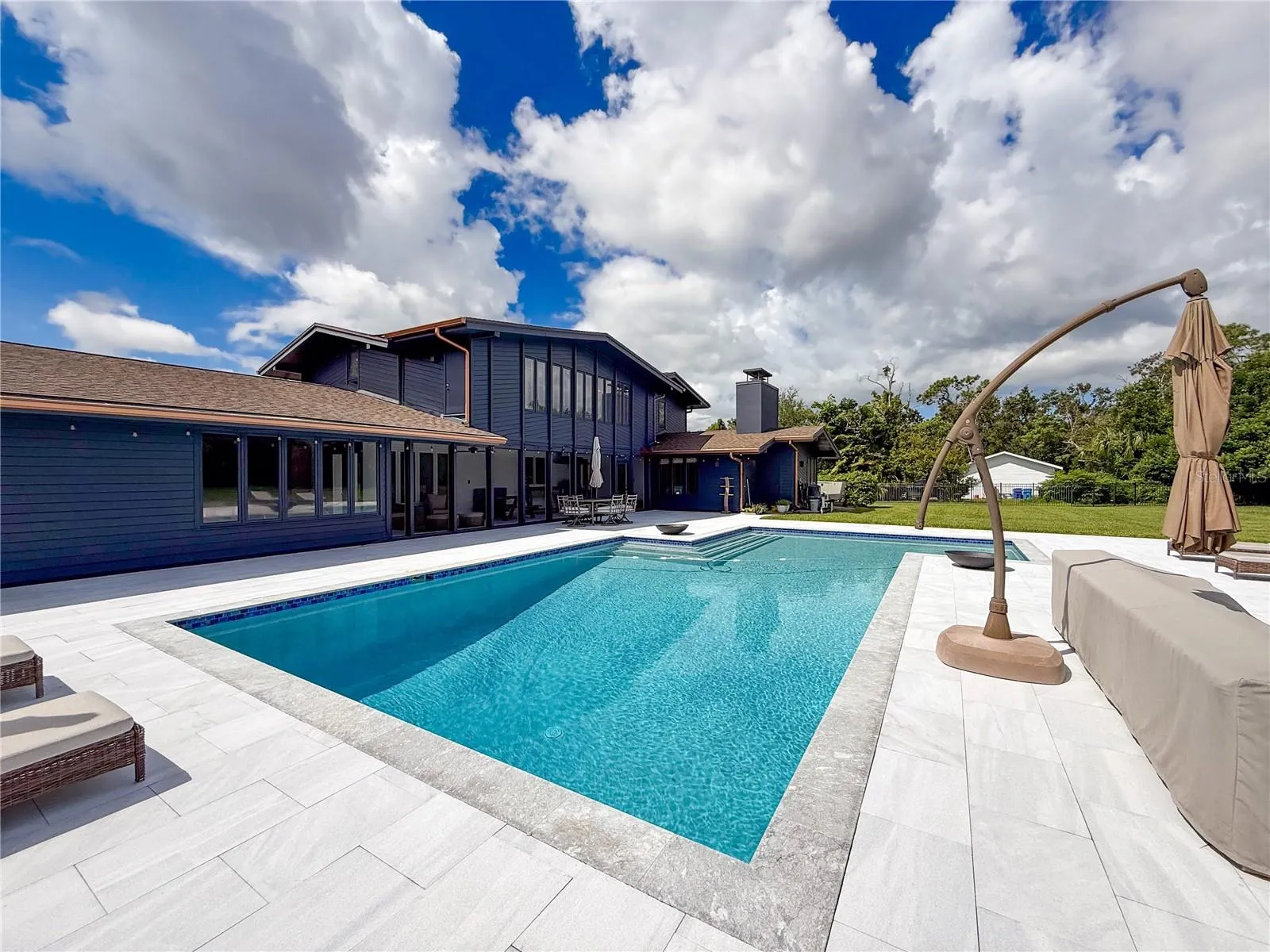 Offering 4 bedrooms and 4 full bathrooms across 4,468 square feet, this stunning home showcases Wright-inspired design elements including vaulted ceilings, natural wood finishes, expansive windows, and harmonious integration with the surrounding landscape. Gourmet kitchen featuring dual ovens, cooktop with hood, dishwasher, and oversized Sub Zero Refrigerator And Freezer Cozy den with wood-burning fireplace. Family Room with built in wet bar for entertaining. Separate Dining room. Bonus room on the first floor could be utilized in many different ways playroom or just a relaxing reading area. First-floor bedroom with en-suite bath—ideal for guests. oversized laundry room with full bath. Large first floor office/hobby room. Upper primary bedroom offers suite with Dual vanities and bidet his and hers walk-in closets. Private office attached to primary bedroom which overlooks the serene backyard. Two additional bedrooms joined by a Jack and Jill bathroom Relax and entertain in your screened-in patio featuring a built-in grill and hood. The newly resurfaced pool and extended paver patio create a true Florida oasis, surrounded by mature landscaping and the tranquility of nature. New Roof 2023 Located approx 6miles from the beach.