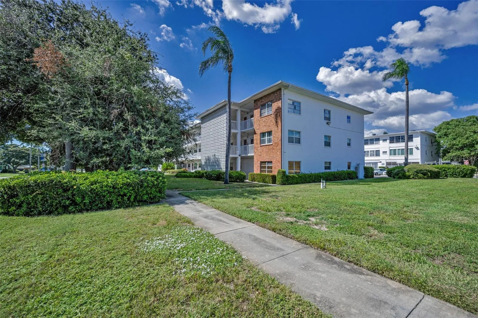 Welcome to this first floor 2-bedroom, 2-bath condo in central St. Petersburg! This condo features over 1,100 square feet with fresh paint throughout the interior and features new laminate flooring in the main living areas. Both bedrooms include generous closet space, and there is also an additional storage closet located just outside the unit. The primary bedroom includes an en-suite bath, adding comfort and convenience. Enjoy the comfort of an enclosed rear porch with air conditioning- an ideal spot for relaxation, working from home, or enertainment. This well-kept community is surrounded by beautiful landscaping and mature trees, creating a peaceful setting. The monthly condo fee covers water, trash, exterior maintenance, and more, making it easy to enjoy a low-maintenance lifestyle. This condo also includes a reserved & covered parking spot, with visitor parking available as well. Ideally located just 15 minutes from Treasure Island and St. Pete Beach, and close to shopping, dining, and vibrant downtown St. Petersburg. Schedule your tour today!