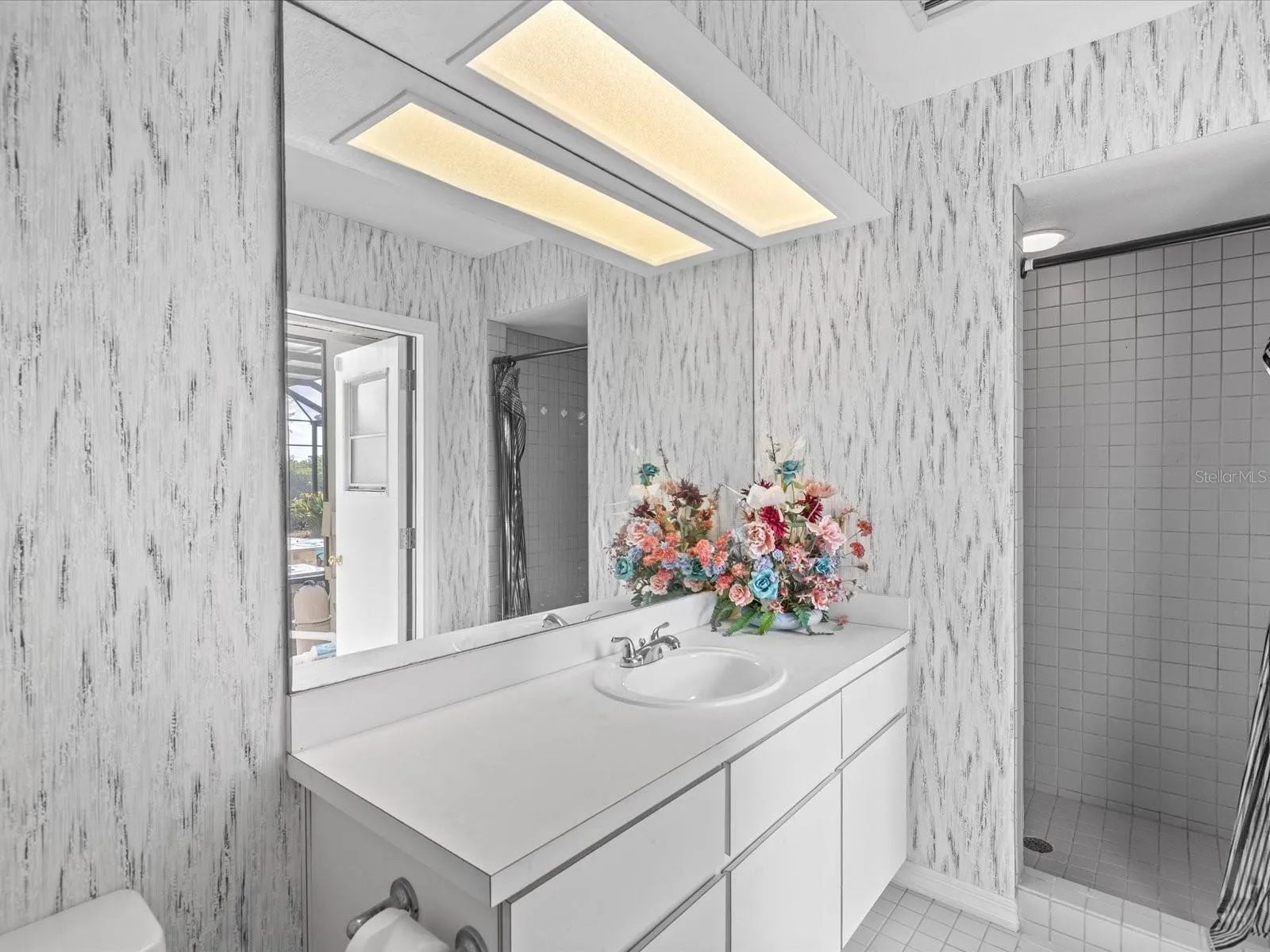 Outdoors, imagination turns to reality with a professionally landscaped, caged courtyard designed for both serenity and celebration. The solar-heated saltwater pool with spillover spa invites year-round enjoyment, framed by travertine decking, an outdoor kitchen with granite counters, stainless sink, drawers, and storage, and a full pool bath for convenience. Beyond the screened lanai, you’ll find space to cast a line into your private pond or stroll across the street to fish on Salt Lake itself.