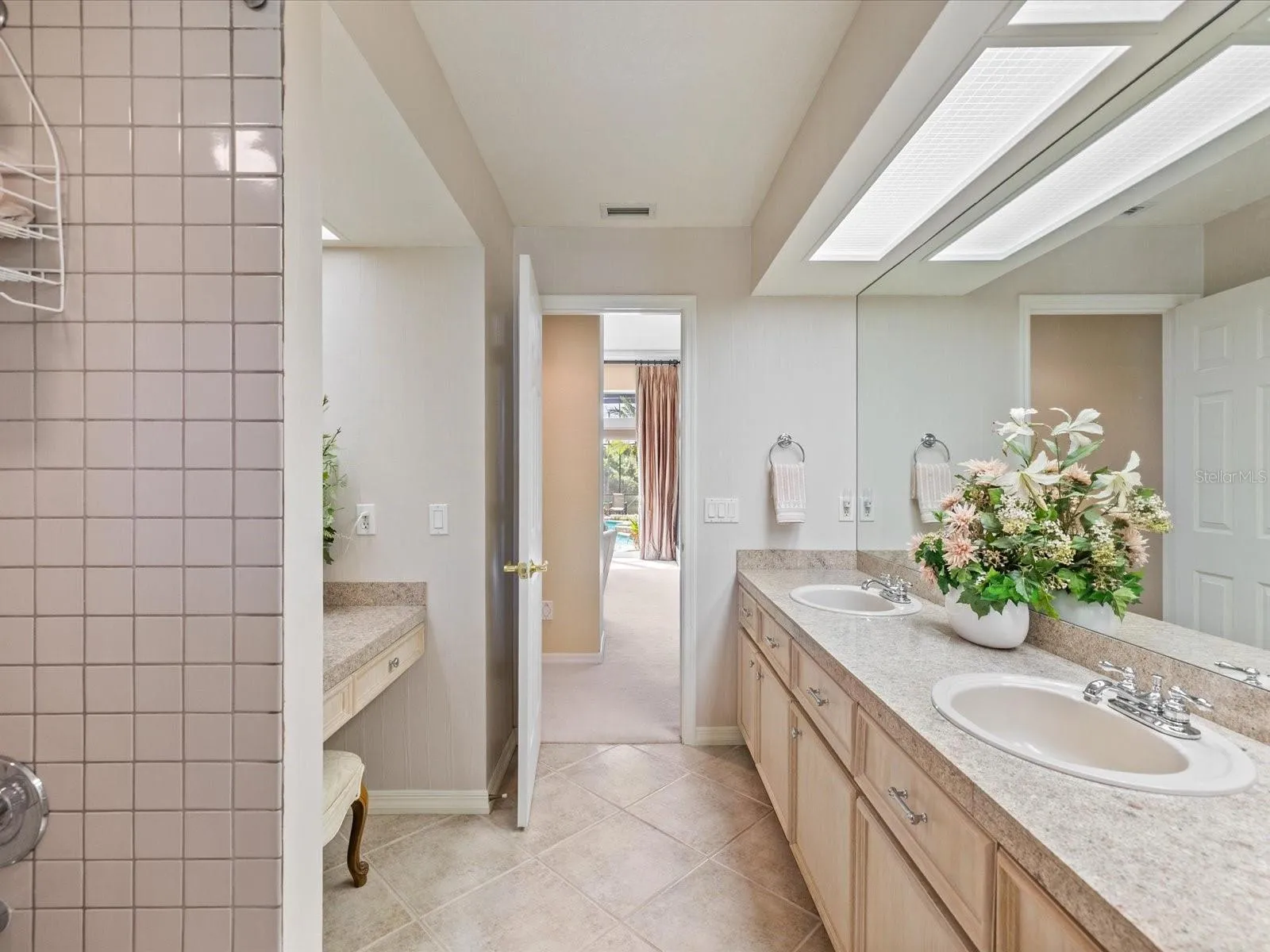 Practical luxury continues with a 3-car oversized garage featuring race-deck flooring, workshop space, and storage closet. The side-entry and circular drives enhance functionality and curb appeal, while the tile roof and custom front door add architectural charm. Over the past several years, thoughtful upgrades have included double-pane impact windows and sliders, an insulated garage door, pool resurfacing and new tile, irrigation and pool pump replacements, and a new pool cage—all ensuring that this home’s beauty is matched by its quality and care.