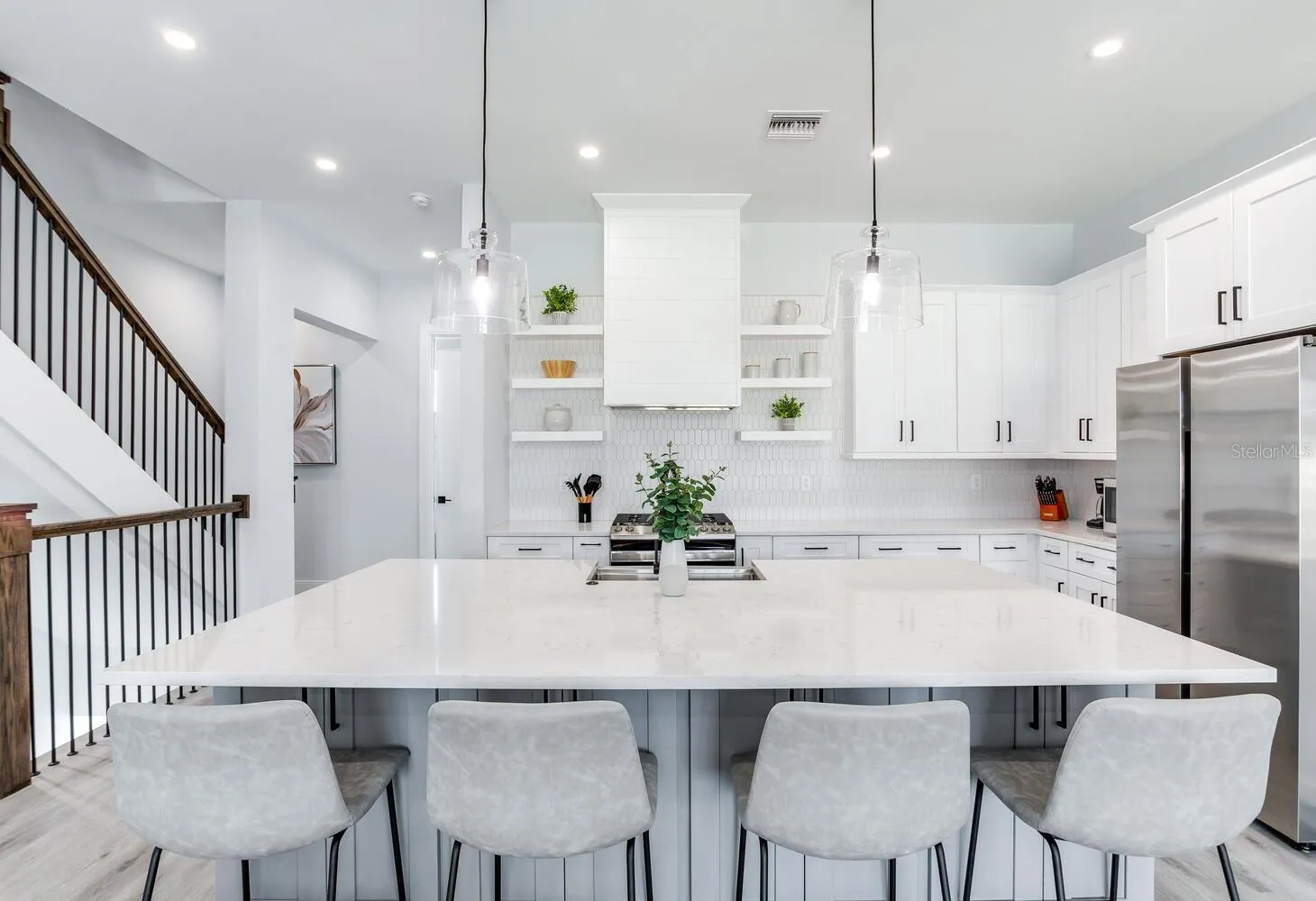 Steps from the shoreline, outdoor living takes center stage with multiple balconies for sunrise coffee and sunset unwinding, while an oversized garage parks up to four cars and still leaves space for a workshop, fitness zone, or media lounge. Inside, natural light and soaring ceilings open to a generous great room, where designer furnishings and layered décor set a polished coastal tone. The chef’s kitchen anchors the main level with premium appliances, custom cabinetry, and expansive prep surfaces that make entertaining effortless. A flexible four-bedroom plan includes a standout primary retreat with a grand double-door entry, private balcony, large walk-in closet, and a spa-inspired bath showcasing an expansive walk-in shower. Completed in 2024 with meticulous craftsmanship, every finish from flooring and fixtures to hardware and lighting was selected for durability and timeless style, creating a refined beachside haven of comfort and ease.
