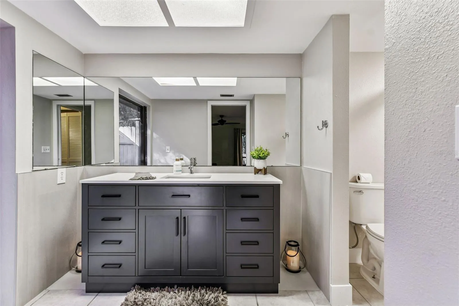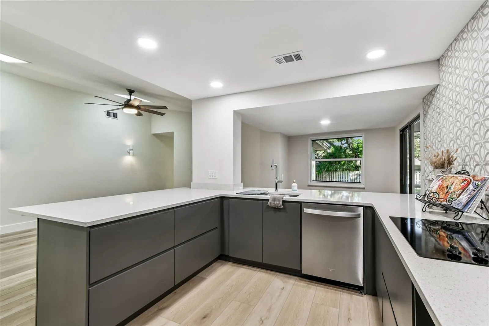 One or more photo(s) has been virtually staged. Welcome to this beautifully renovated 4-bedroom, 2-bathroom home offering nearly 2,000 square feet of comfortable living space in the highly desirable community of Westlake Village in Palm Harbor. As you step through the front door into the foyer, you’re greeted by a bright and inviting living room to your right, which flows seamlessly into the formal dining room overlooking the lush backyard. This home features a thoughtful split floor plan, with a spacious master suite complete with a walk-in closet, a private en suite bathroom and its own set of sliders leading to the side of the house. Across the home, past the updated chef’s kitchen you will find three additional bedrooms, a full bathroom, and an indoor laundry room with a utility sink. The property has been tastefully renovated throughout, showcasing luxury vinyl plank flooring, fresh interior paint and trim, and a stunning chef’s kitchen with stainless steel appliances. A newer roof and hurricane impact windows provide peace of mind for years to come! The oversized, fully fenced backyard offers plenty of space to add a pool and features a spacious screened porch with a beautiful paver patio—perfect for entertaining or relaxing outdoors. Residents of Westlake Village enjoy access to exceptional community amenities including a park, playground, clubhouse, pool, and more. Ideally located only 10 minutes from local beaches like Honeymoon Island, Sunset Beach, and Fred Howard Park, and only 35 minutes to Tampa International Airport! This home blends style, comfort, and convenience in one of Palm Harbors most sought-after neighborhoods!