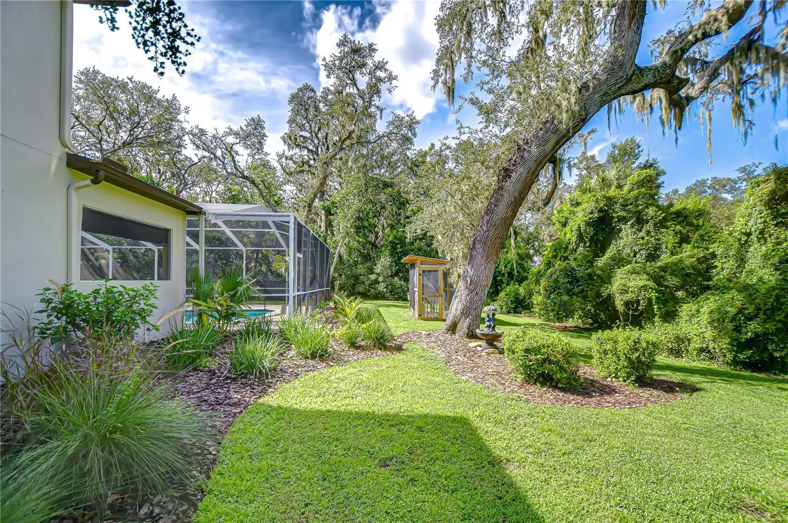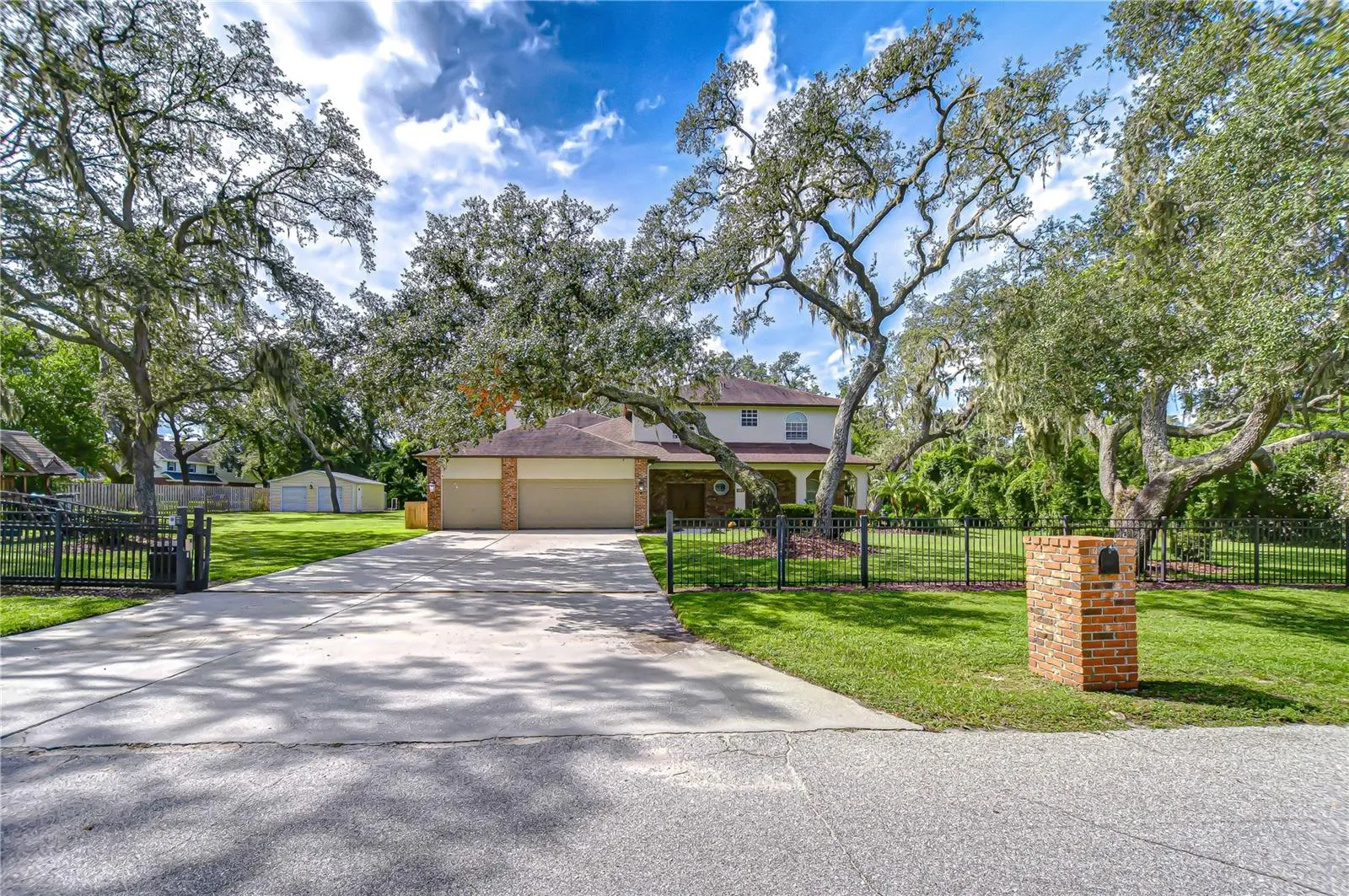 A rare opportunity in Brandon! Tucked away on nearly an acre of land, this private and peaceful estate offers the freedom of no HOA, no CDD, and no deed restrictions—all in one of the area’s most desirable locations. Behind the gated entrance, you’ll discover a property that truly has it all: 3-car garage, oversized 20×21 shed, playground, chicken coop, heated pool, and endless room to live, play, and entertain. The home has been thoughtfully updated with big-ticket improvements including a new roof & A/C unit (2016), pool resurfaced with PebbleTec and travertine deck (2017), pool heater (2017), fence & gate (2017), and a brand-new septic drain field (2025). Step through the welcoming front porch into a soaring two-story foyer. The formal living and dining rooms set the stage for memorable gatherings, while the kitchen is a true entertainer’s dream—featuring a large island, walk-in pantry, abundant cabinetry, and breakfast nook with sliders overlooking the pool. The family room invites relaxation with vaulted ceilings, a fireplace, and custom built-ins. A versatile downstairs bonus room with full bath and lanai access offers the perfect game room, media space, or in-law suite. You’ll also love the oversized laundry room with plenty of storage. Upstairs, the private primary suite feels like a retreat with its massive custom walk-in closet and en-suite bath with dual sinks, makeup vanity, and walk-in shower. Three additional bedrooms are generously sized, including one with its own en-suite—perfect for guests. A spacious upstairs loft provides the ideal flex space for a library, playroom, office, or second media room. Outside, your backyard oasis awaits! Enjoy a sparkling heated pool, oversized covered lanai pre-plumbed for your dream outdoor kitchen, and a huge yard with mature oak trees providing shade and privacy. Whether it’s hosting barbecues, raising chickens, or parking your boat or RV, this property offers unmatched flexibility and lifestyle. All this just minutes from shopping, dining, and the Brandon boat ramp. Space, privacy, and convenience—this is Florida living at its best.