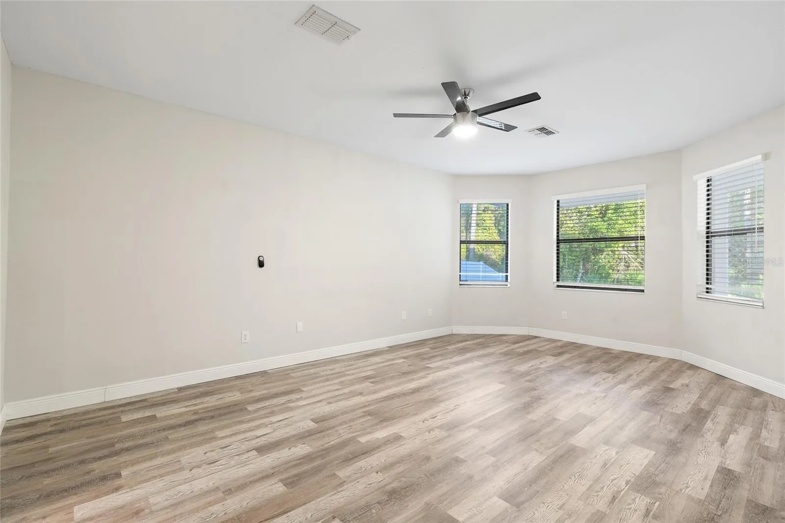 - Ceiling Fans(s), Open Floorplan, Walk-In Closet(s), Eat-in Kitchen, Kitchen/Family Room Combo, Primary Bedroom Main Floor, Split Bedroom, Window Treatments, Stone Counters, Solid Wood Cabinets, Solid Surface Counters