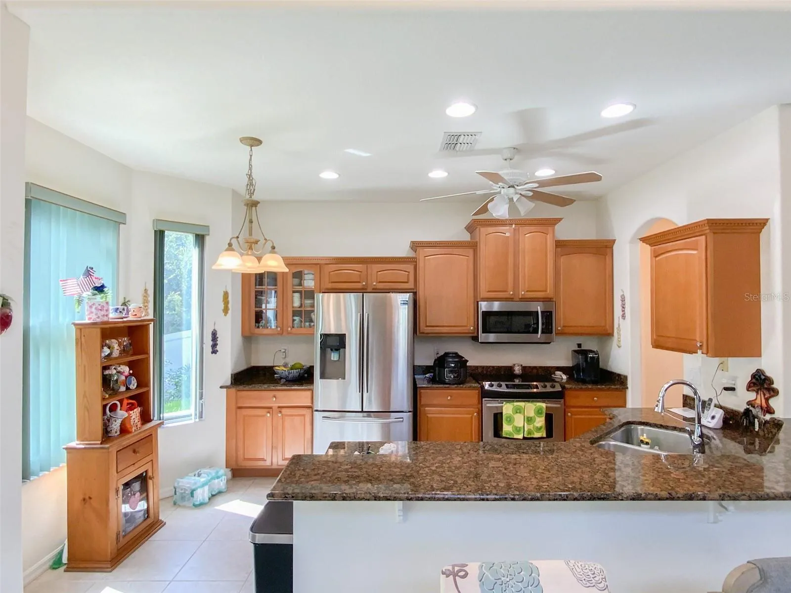 - Ceiling Fans(s), Thermostat, Walk-In Closet(s), Eat-in Kitchen, Primary Bedroom Main Floor, Stone Counters, Solid Wood Cabinets, Solid Surface Counters