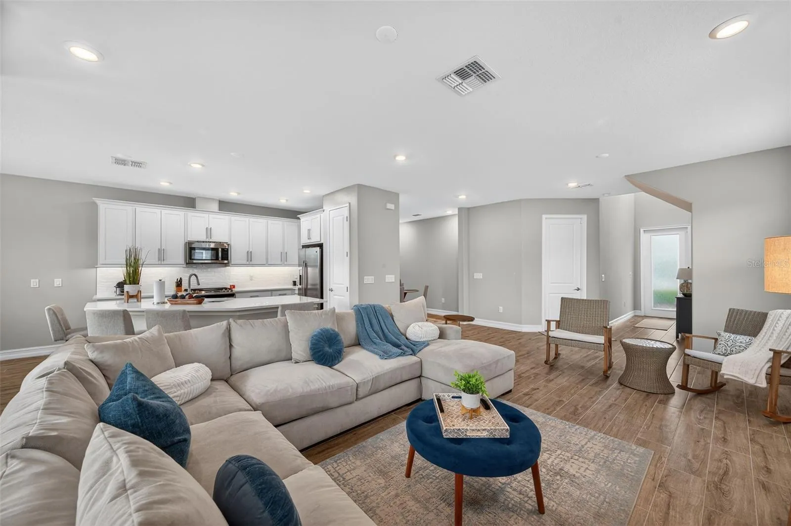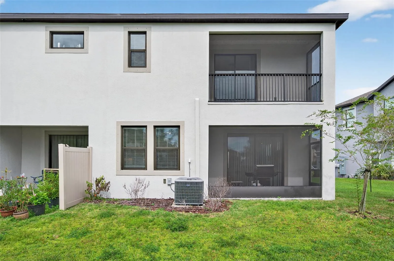 One or more photo(s) has been virtually staged. Desirable ESTANCIA Community and sought after location at Wiregrass in Wesley Chapel. Built in 2022 this townhome is move in ready! This Smart home features thermostat control. 3 Br., 2.5 Bath, Oversized 2 car garage. Beautiful curb appeal, pavered driveway. Open floor plan. Gorgeous plank tile throughout living space, Spacious Kitchen has Quartz Counter tops, Stainless steel appliances. 42” soft close cabinets and large kitchen island breakfast bar overlooking the family, dining, and dinette areas. The sliding glass doors to the lanai is covered and screened in. Upstairs, there are 3 bedrooms. The Primary Bedroom has a nice tray ceiling and in addition its own private screened-in covered balcony. The primary private bathroom has a walk-in shower, huge walk-in closet, and double vanity sinks. Laundry room with full size washer and dryer is located on the second floor. The amenities include the Resort-style heated pool with lap lanes, a Fitness Center, Clubhouse, recreational events, Tennis, Basketball and Pickleball Courts, park, dog park and walking trails. Outside the Community there are Medical Facilities and Specialists, Hospitals, Malls, shopping, restaurants and more. A+ Rated School District. Easy access to highways and Downtown Tampa.