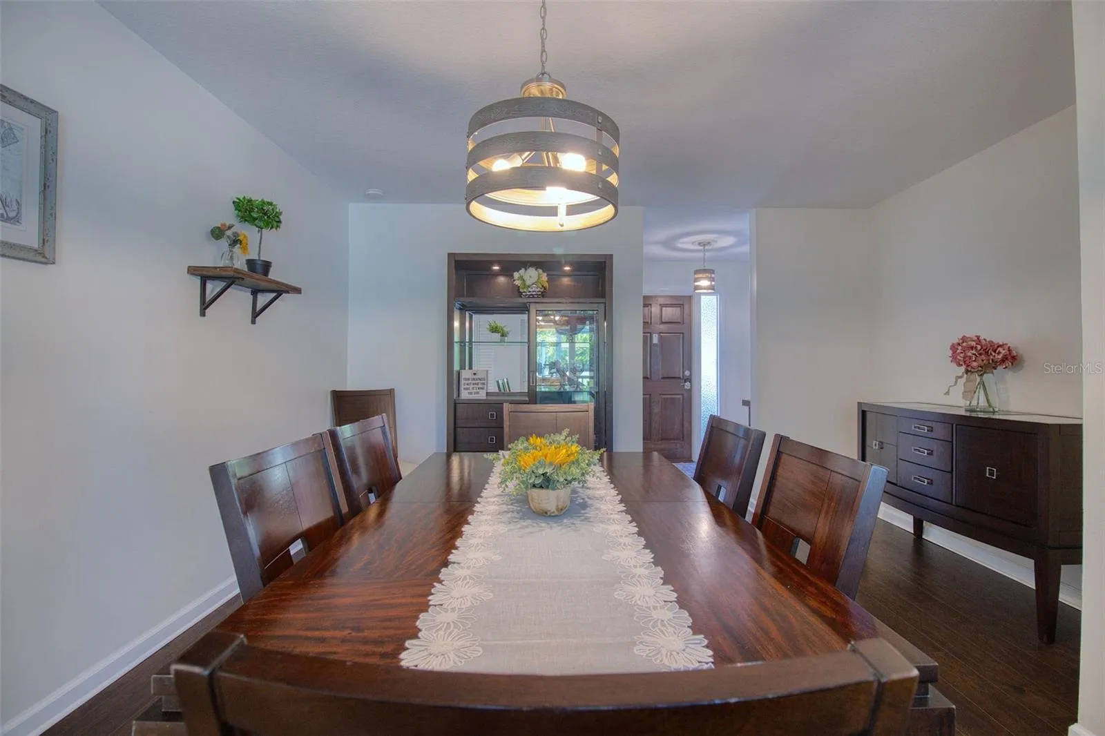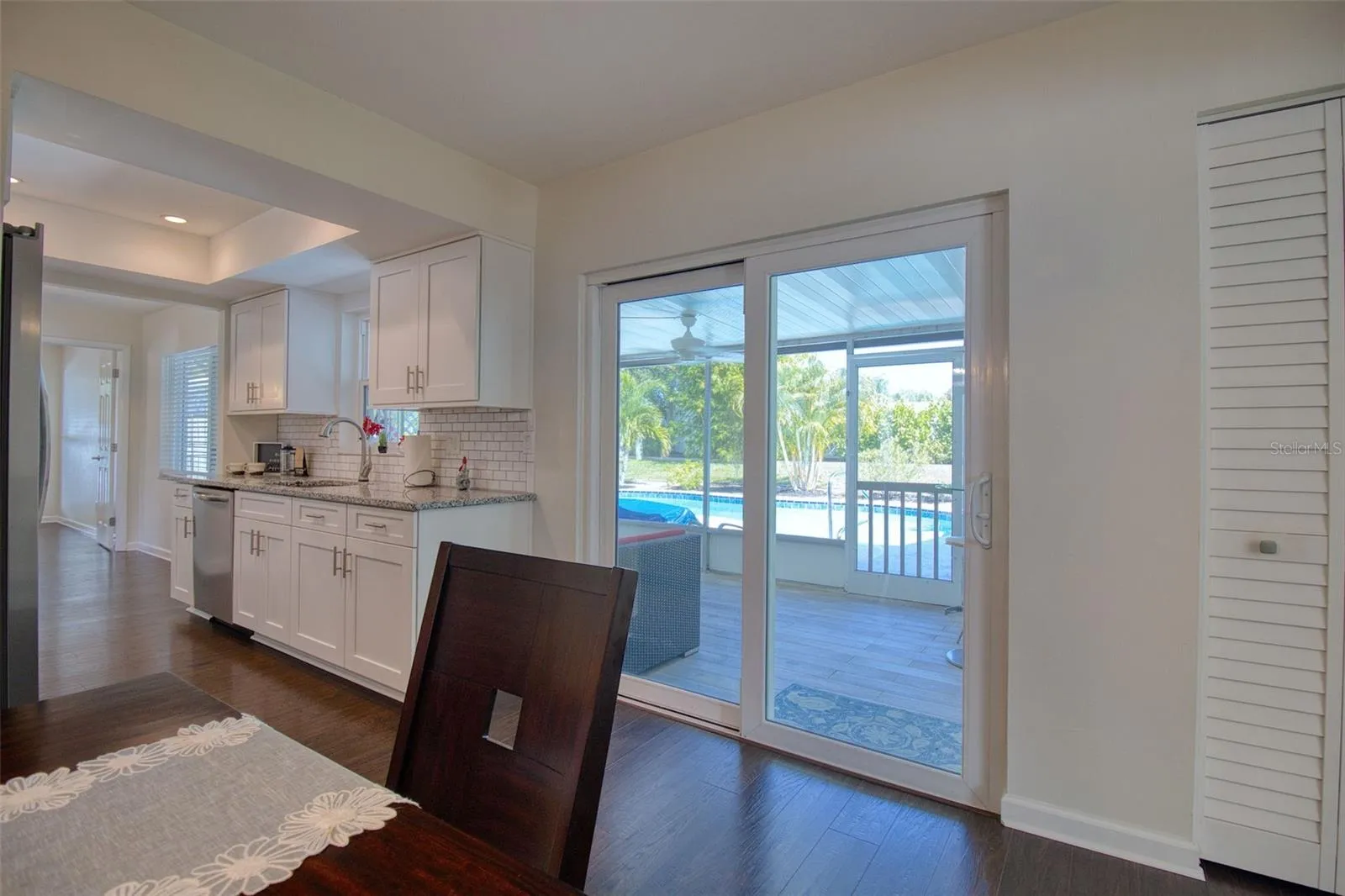This home ticks all the boxes: Owned solar panels: Tick. Newer roof: Tick. Hurricane windows and sliders: Tick. Pool & Jacuzzi: Tick. 3 beds, 2 baths: Tick. Oasis Backyard: Tick. Close to shops and restaurants: Tick. Excellent schools: Tick. This tres chic 3 bedroom, 2 bath pool home sits gracefully on a beautifully landscaped oversized lot, NOT A FLOOD ZONE in the desirable Countryside Woodgate neighborhood. This charming home is tastefully renovated and boasts a living room, formal dining room and a large outdoor Florida room, 3 generous sized bedrooms, the Primary with an ensuite bathroom; and a spacious kitchen with exquisite granite countertops, soft close white cabinetry and newer stainless steel appliances. The primary bedroom is split from the other bedrooms and is a bright and spacious retreat with an ensuite bathroom. The primary bathroom has been tastefully renovated with a granite countertops and frameless glass shower surround. The home’s 2nd bathroom mirrors this modern aesthetic with its streamlined fixtures and modern granite countertops and features a beautiful tub and shower combo. The huge Oasis backyard is awesome! It is so beautiful outside with stylish pavers and many native flowers and plants that attract birds and butterflies. The jewel of this magnificent backyard is a large swimming pool. The backyard is accessed from the light and bright Florida room, opening up on to a large patio with a jacuzzi for a seamless blend of indoor/outdoor entertainment living. The spacious yard is fenced with a white vinyl fence (2020) for privacy and pool safety. There is also a fire pit and an outdoor shower to round out this magnificent backyard. This home is move in ready with tasteful touches such as; neutral color tones, newer fans, modern light fixtures, laminate wood look floors throughout this impeccably clean and welcoming home. This home also features newer rain gutters, hurricane impact windows (2019), newer roof (2022), solar panels (2022), a/c and duct work (2021), water softener (2020), newer hot water heater, newer well pump for irrigation and pool pump, exterior paint (2025). There is plenty of natural light and room to grow in this well laid out open floor plan. This layout allows the ability to convert the formal dining room into an office. Couple this with approx. $50 a month electric bills, excellent schools and close to shops, airports, beaches and all that fabulous Clearwater has to offer and you have the quintessential Florida lifestyle home.