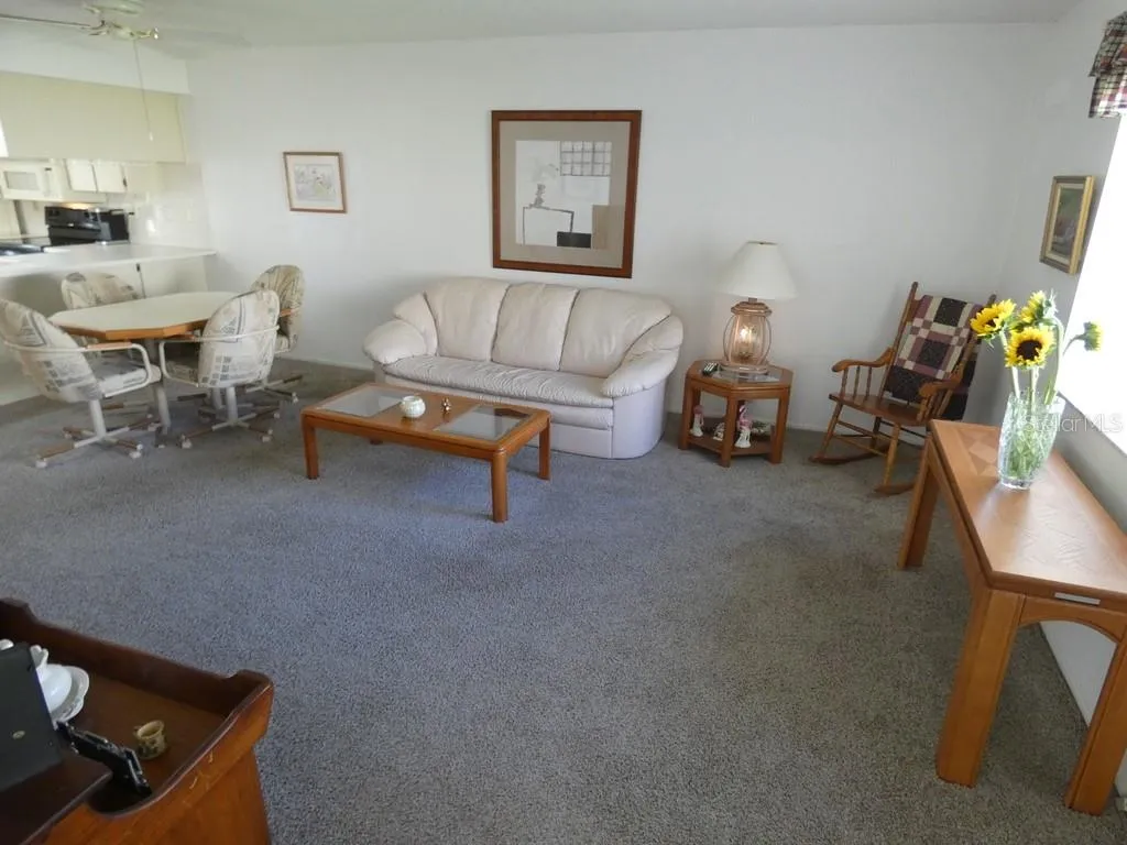 1-Story Block Condo with Privacy & Upgrades! Enjoy the best of Florida living in this 55+ 1 Bedroom, 1 Bath Condo, 1 Bonus Room with a closet, featuring a covered carport and no rear neighbors, 2020 kitchen and bathroom cabinets for a fresh, modern feel, plus a brand-new 2025 AC system. The community pool is just around the corner, Out back, there’s space to grill and enjoy the quiet, while inside you’ll appreciate the washer and dryer, pull-down attic ladder with private overhead storage, and a doorbell camera for added peace of mind, from the parking area to the interior, there’s only one 3.5-inch step — easy access for all!! Less than 45 minutes to St. Pete Beach, recently named #1 Beach in America and #5 in the World, this home offers the perfect blend of comfort, convenience, and Florida lifestyle.?  Please view two videos: Tour 1 & Tour 2
