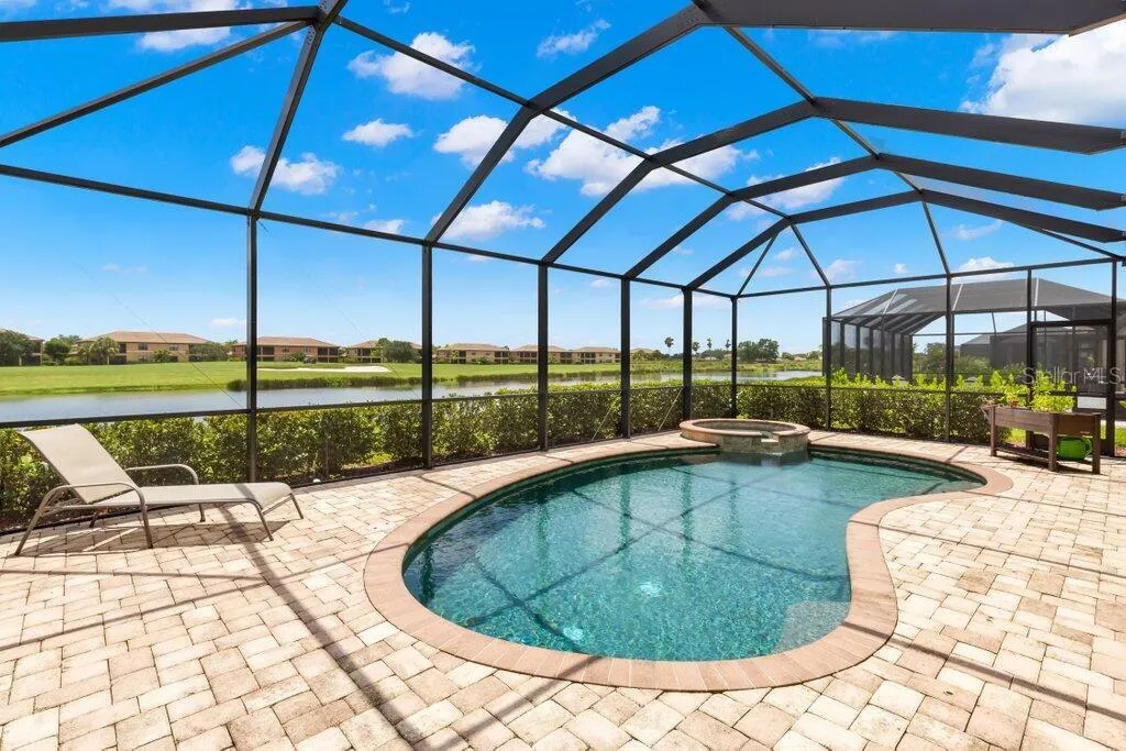 Tucked away on one of the most desirable lots in the community, this 2,268 sq ft residence features an open floor plan with great room, formal dining and office, and flows outdoors to a private pool and spa along with prime views of the golf course—prime for Florida living. The modern kitchen and thoughtfully designed living spaces accommodate both everyday family life and entertaining. The oversized 3-car garage and contemporary finishes add convenience and style. Located just minutes from Bradenton’s finest beaches, shopping and dining, and zoned for top schools, this residence offers effortless turnkey living in a gated community with resort-style amenities. Ride your bike to the new Marketplace at Heritage Harbour featuring a new Target, Costco, Hobby Lobby, and tons of new restaurants!