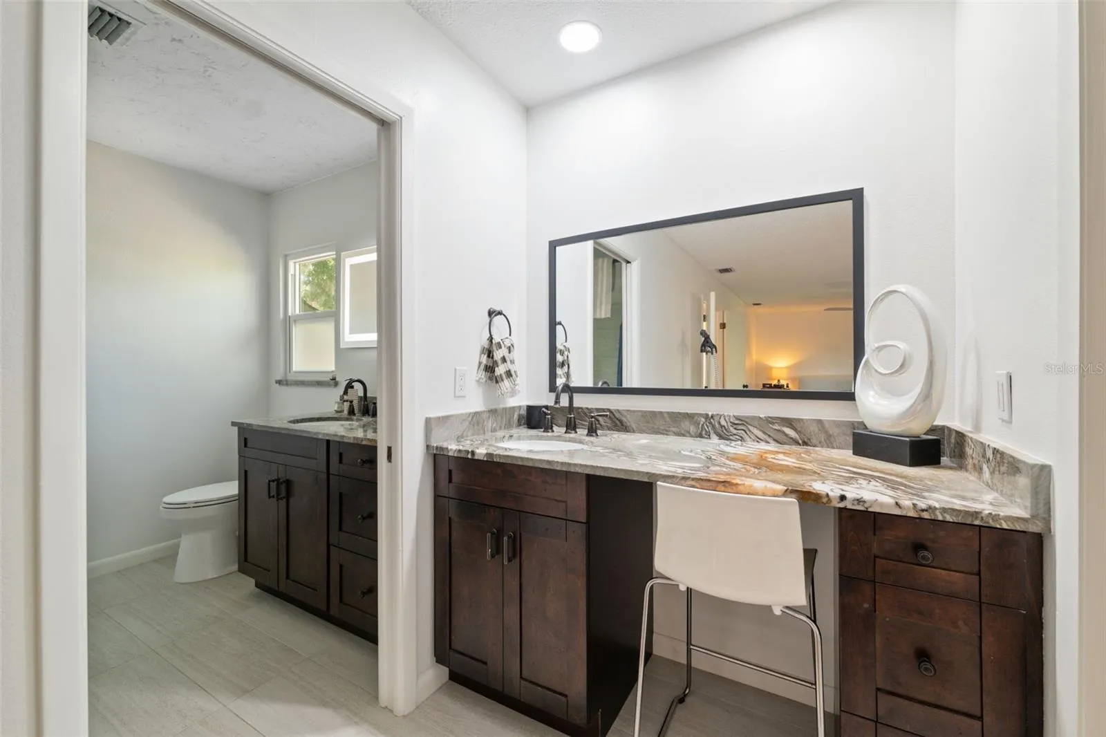The primary suite offers a peaceful retreat with private lanai access overlooking the pool, while the updated baths deliver spa-like style and finishes. Outside, enjoy an oversized driveway, a garage with epoxy flooring, and a fenced backyard oasis with sparkling pool and electric one-person spa — your personal sanctuary for year-round enjoyment.