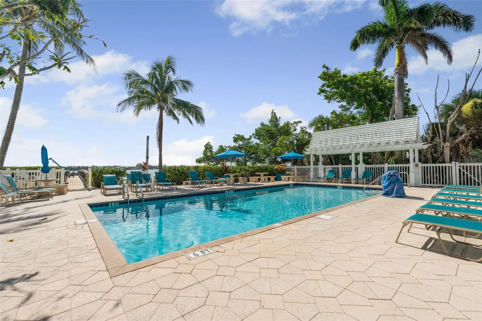 Access to pool, bay pier, loungers & beach chairs