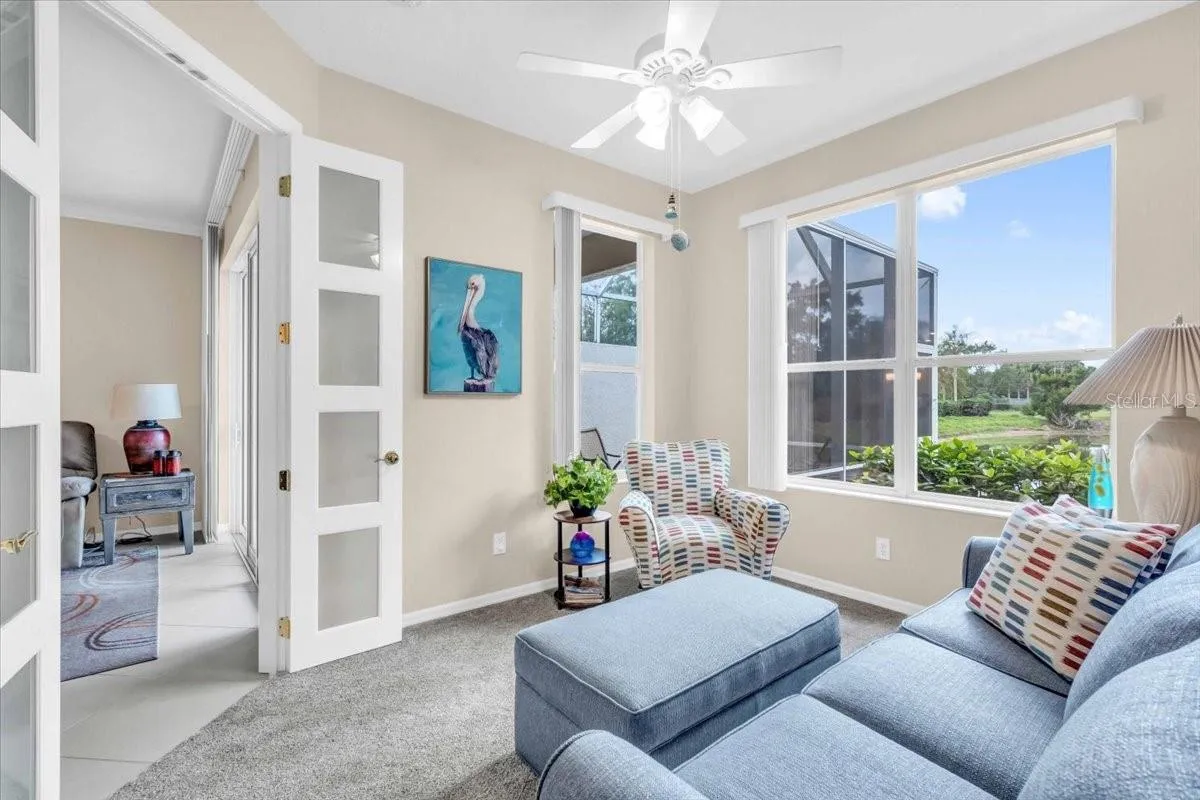 Beautiful, Private End Unit Villa with Lake Views in Lakeridge Falls – One of a Kind 55+ Gated Community! Privacy abounds with this being an end unit with unobstructed direct water views of the large pond. Nestled in the highly sought-after Lakeridge Falls, a premier 55+ gated community, this beautifully upgraded villa offers the perfect blend of comfort, privacy, and convenience. Set amidst meticulously maintained grounds, this villa is just minutes away from shopping, dining, entertainment, and world-renowned beaches,providing an ideal setting for both full-time and part-time residents seeking tranquility and an active lifestyle. As you approach this stunning villa,you’ll be greeted by lush landscaping, creating a welcoming first impression. Upon entering, you’ll immediately notice the thoughtfully planned upgrades throughout the home that enhance both its style and functionality. Relax and unwind while taking in captivating views of the serene lake from the great room, dining room, master bedroom, bedroom 3, and the covered and extended screened lanai offering the perfect retreat from the hustle and bustle of everyday life. The great room seamlessly flows into the kitchen, dining room, and bedroom 3, creating an open, airy feel. The kitchen is designed to impress, whether you’re hosting friends or enjoying a quiet meal. It boasts upgraded white cabinets, corian countertops, and newer appliances. The breakfast area inside kitchen adds additional space for casual dining. The well apportioned master suite serves as a private retreat with a walk-in closet, and an ensuite bath with dual sinks, walk-in shower, and soaker tub. The guest bedrooms provides ample space for your guests. Bedroom 3 is versatile enough to function as a den if you don’t need a 3rd bedroom to suit your lifestyle needs. The covered lanai with privacy wall and extended screen lanai offers the perfect spot to enjoy scenic lake views. The court load two-car garage with built-in cabinets gives you the extra storage you need. The home has been thoughtfully designed to maximize both comfort and convenience. Lakeridge Falls Community Features: This vibrant, active 55+ community offers a range of amenities that enhance your lifestyle. Enjoy 24-hourgated security, a large community pool, a remodeled clubhouse with a fitness center, and a variety of social and recreational activities hosted by the community’s social committee. The separate community building features a library, billiards room, and more. Walkable sidewalks throughout the community encourage an active lifestyle, making it easy to meet neighbors and enjoy the many amenities offered.
