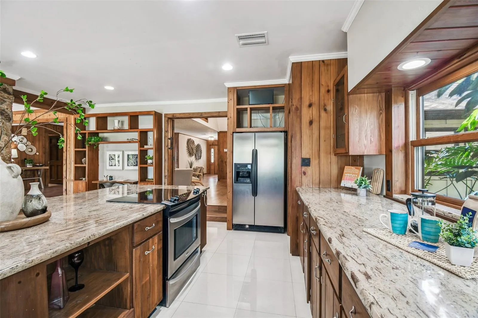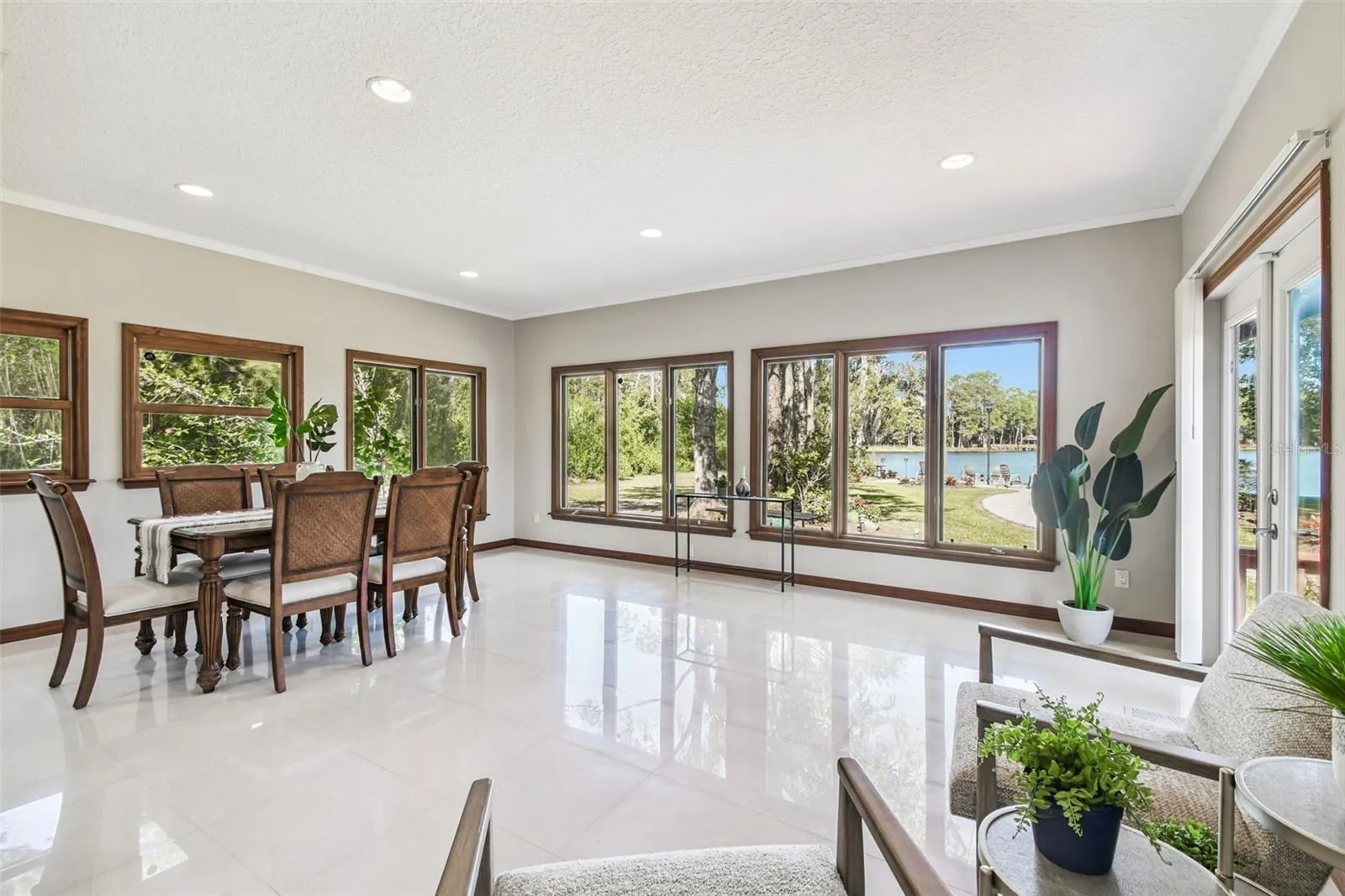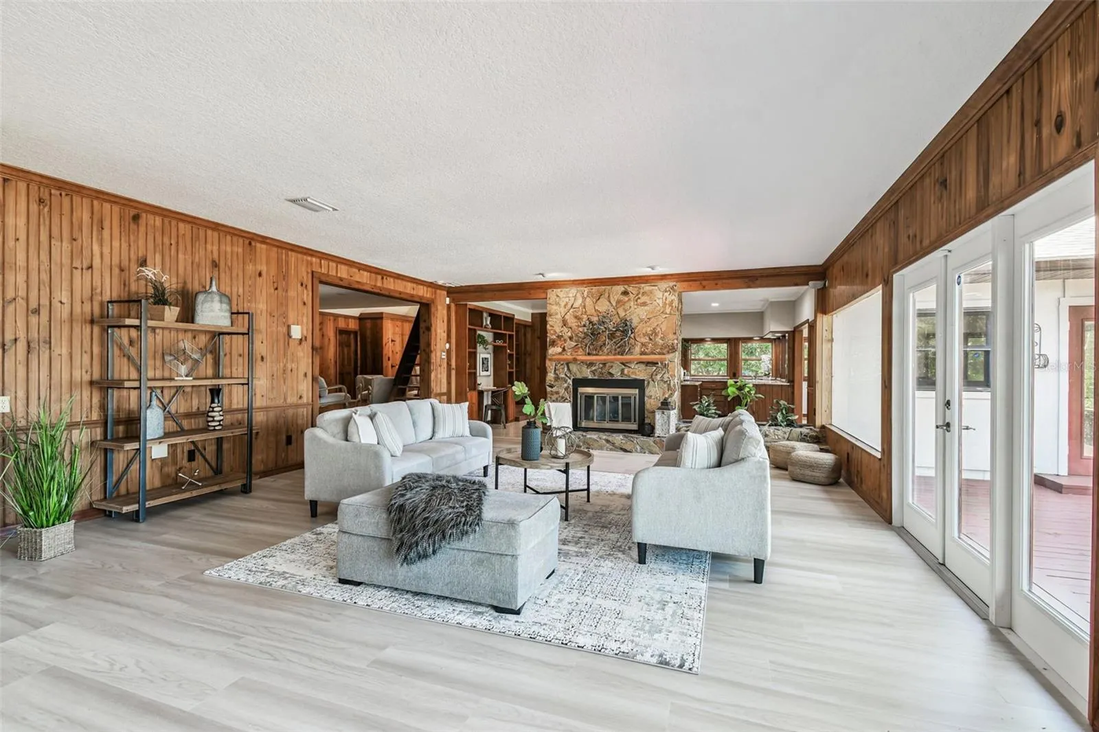 Rare 175’ Lakefront Property in Odessa! Welcome to this beautifully maintained 4-bedroom, 3-bath, 3,240 sq. ft. home on 1.82 acres along private James Lake—where Old Florida charm meets modern luxury. The property line along the lake is 175 feet. Only 135 feet of that is clear of any vegetation. There is approximately 40 more feet that has heavy vegetation, which could be cleared out, giving you a full 175 feet open to the lakeside Nestled beneath a canopy of mature oaks, pines, and lush Florida foliage, this home offers exceptional privacy, tranquility, and captivating water views from multiple rooms. Originally built in 1947 and extensively renovated, the residence now features a spacious open floor plan with fresh paint, new luxury vinyl plank flooring, and abundant natural light throughout. The chef-inspired kitchen boasts rich wood cabinetry, granite countertops, stainless steel appliances, and a breakfast bar, flowing into a bright Florida room and a grand 600 sq. ft. great room with soaring ceilings, a dramatic stone fireplace, and French doors leading to a newly renovated 500 sq. ft. deck overlooking the lake. The primary suite opens to the rear deck and offers a spa-like ensuite bath, while an expanded 3-car garage and interior laundry add everyday convenience. Outdoors, enjoy a new paved walkway and patio down to the lake, perfect for morning coffee, fishing, or sunset relaxation. Just minutes from the Veterans Expressway, 20 minutes to Tampa International Airport, and 30 minutes to downtown Tampa or the Gulf beaches, this rare lakefront gem captures the best of Florida living—peaceful, elegant, and perfectly located.