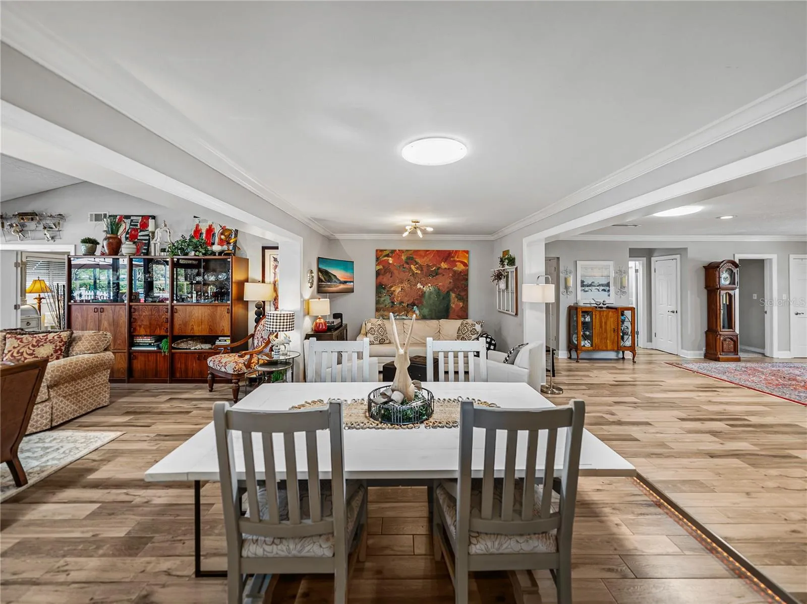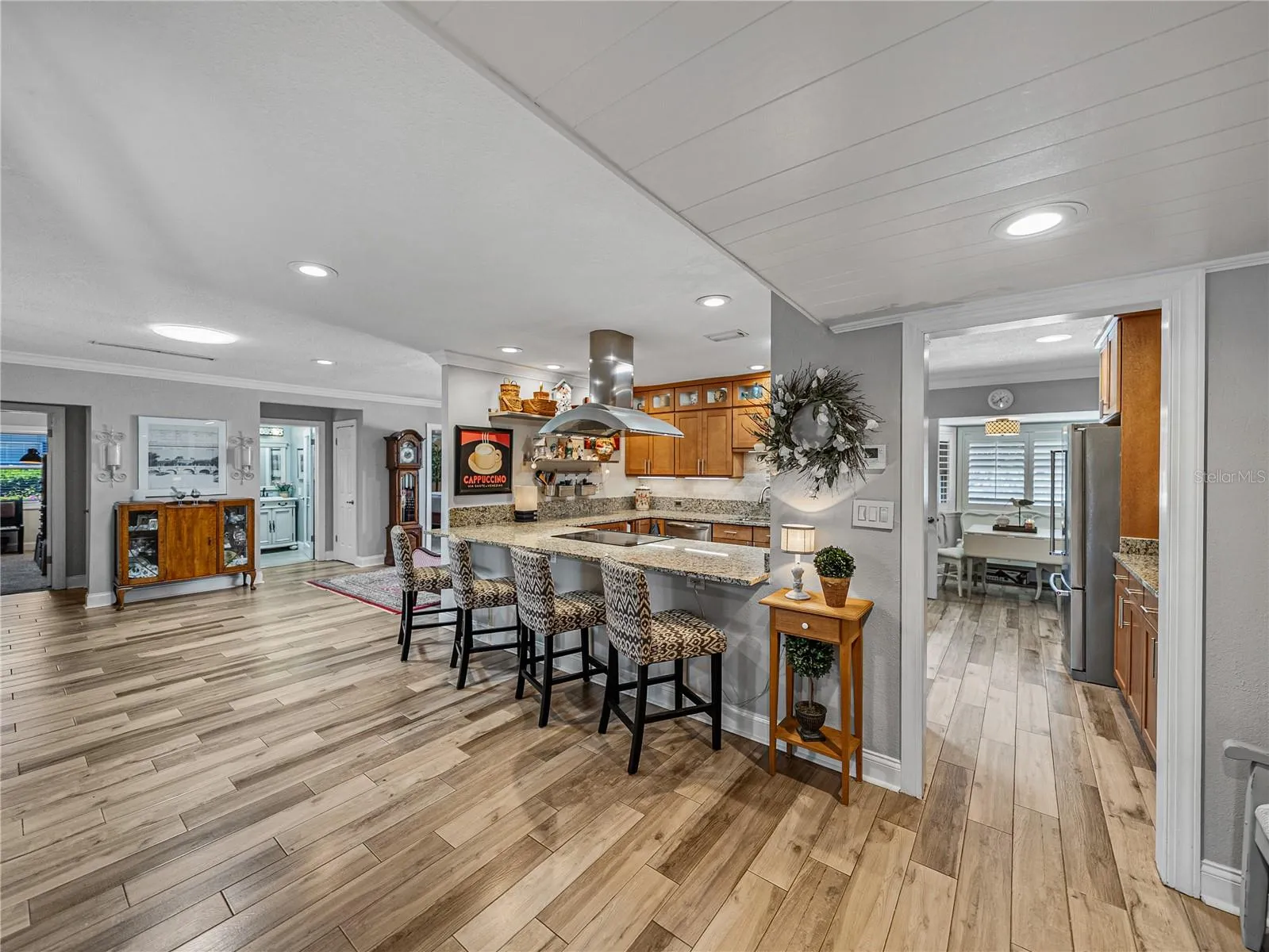 LUXURY GOLF COURSE LIVING awaits with this beautifully updated estate home, ideally situated on the 5th fairway of the Pelican Golf Course, offering stunning views and serene Florida sunrises. From the moment you arrive, you are greeted by the home’s charming exterior, vibrant landscaping, and a circular driveway that sets the tone for the exceptional spaces inside. Step into an open and bright floor plan designed with both style and functionality in mind. Soaring vaulted ceilings, with exquisite wooden beams and oversized windows throughout, fill the home with warm and natural light. At the heart of the home is the spacious kitchen, complete with beautiful maple cabinetry, SS appliances, and an expansive breakfast bar. The walk-in pantry ensures ample storage, while the intimate cafe nook offers a charming setting for casual dining. Directly off the kitchen is a private courtyard, fully fenced for added privacy (NEW PVC FENCE, April-2025). This peaceful outdoor space, accessible from both the kitchen and primary suite, offers a secluded escape perfect for enjoying your morning coffee or simply relaxing outdoors. Just beyond is the dining room, complete with a built-in wet bar, beverage refrigerator, and additional bar seating. It provides the ideal setting for both intimate soirées and grand celebrations. Adjacent to the dining room is a tranquil alcove that offers a cozy space to unwind. The family room showcases a magnificent stone fireplace providing an inviting space for conversation or relaxation, with large windows framing sweeping views of the golf course that brings the outdoors in. The primary suite is thoughtfully positioned on the left wing of the home, ensuring maximum privacy. This luxurious retreat boasts oversized windows, dual closets (A custom Walk-Through closet & an additional spacious custom Walk-In closet with direct access to the courtyard), and a beautifully renovated ensuite bathroom. This luxurious ensuite features a sleek, freestanding soaking tub, dual vanity sinks, and a generously sized walk-in shower, providing a true sanctuary. Three secondary bedrooms: The front bedroom is appointed with custom built-in dresser drawers and a custom walk-in closet, that share a charming Jack-and-Jill bath with the second bedroom. The third bedroom, located at the rear of the home, is oversized and host 2 closets. Although, it is currently being used as a cozy den it could easily function as a second primary suite or an in-law suite, with a full bath that is just steps away. The private backyard oasis is encased by a charming white picket fence and offers panoramic views of the fairways. This quiet haven offers the perfect setting for both grand gatherings or just watching golfers pass by. **NOTABLE MENTIONS: This home sits 45+ feet above sea level, NO FLOOD ZONE, NO FLOOD INSURANCE REQUIRED, Situated on the 5th Fairway, Double-Pane Windows, Storm Shutters, Plantation Shutters/Honeycomb Blinds, Electrical Panel Wired for a Generator, NEW A/C (2023), NEW Roof (April 2025), NEW PVC Fence (April 2025), NEW HOT WATER HEATER (April 2025), Workshop & ½ Bath in Garage, & so much more! Call today for a private tour of this exquisite, ‘worry free–stress free’ home and start enjoying all the amazing things that Belleair has to offer. Just around the corner from the prestigious Pelican Golf Country Club, sugar-white Gulf beaches, fine dining, fabulous boutiques, and just a few minutes from Tampa International Airport.