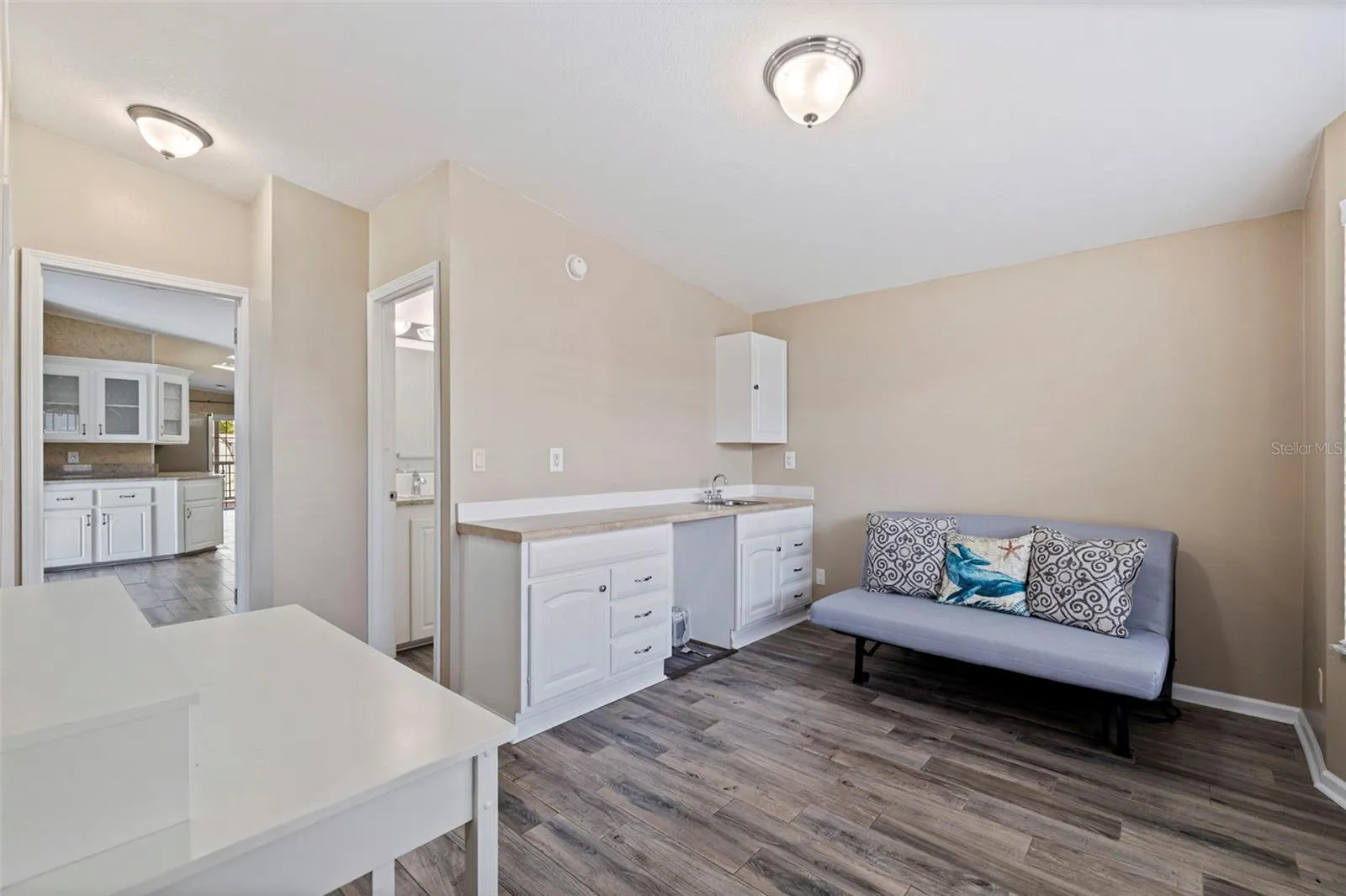 Welcome home to one of the most unique finds in this vibrant 55+ resident-owned community! This spacious 2008 build sits on a coveted double lot with plenty of parking for guests and even your golf cart. Step inside and you’ll love the bright, open layout with high ceilings, modern flooring, and an updated kitchen complete with granite countertops, stainless steel appliances, a combo washer/dryer, and a built-in wine fridge ready for happy hour. The real showstopper is the private mother-in-law suite which is complete with its own entrance, full bath, and wet bar. This suite would be perfect for a caretaker, visiting family, or anyone wanting their own cozy retreat. The primary suite feels like a true getaway with three walk-in closets, a garden tub, separate shower, and access to the screened deck where morning coffee or evening breezes await. Enjoy peace of mind with a newer double roof (2023) and central air (2017), plus all the perks of maintenance-free living in a fun, 5-star community. Residents here enjoy resort-style amenities designed for both relaxation and fun! Take a dip in one of two heated pools (one for adults only), unwind in the indoor sauna or large hot tub, or stay active with water aerobics, fitness classes, and well-equipped exercise facilities. The community clubhouse offers a library stocked with books, games, puzzles, and videos, along with billiards, ping-pong, and lighted shuffleboard courts. There are also multi-sport courts with league play for shuffleboard, bocce ball, horseshoes, and even a golf practice area. With frequent dances, social clubs, an active volunteer network, and resident leagues for golf, bowling, and poker, there’s always something happening. The community is clean, safe, and beautifully maintained, with night safety patrols for added peace of mind. Conveniently located near US-19 for easy access to beaches, shopping, dining, golf, and medical care. One small pet is welcome, golf carts are encouraged, you’re in an X flood zone, and the land share is INCLUDED – meaning no lot rent! This home is ready for it’s next owner – schedule a private showing, today!
