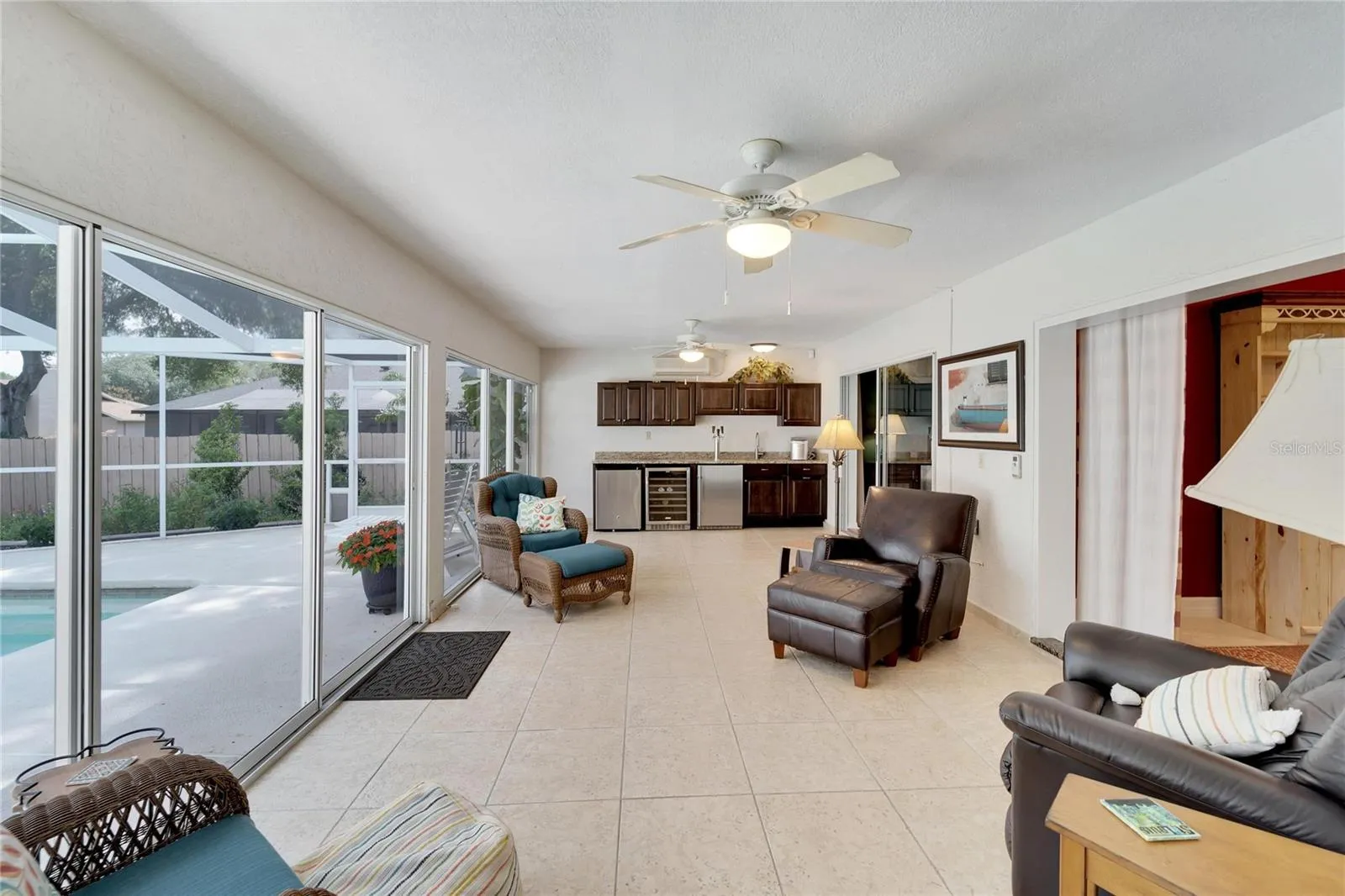 Welcome to your dream home in the heart of Valrico, where tranquility meets convenience! This stunning 4-bedroom, 2-bathroom residence, owned by a single owner and meticulously cared for, offers a perfect blend of modern amenities and flexible spaces, catering to your every need. As you approach, you’ll be captivated by the charming curb appeal and the spacious 3-car garage, providing ample storage and parking. Step inside to discover a thoughtfully designed layout that exudes comfort and versatility. The open living areas are ideal for both relaxation and entertainment. Adjacent to the living room is an additional space featuring a custom beverage bar, complete with a Kegerator and wine fridge – a haven for home brewers and wine enthusiasts alike. Imagine hosting gatherings and creating memorable moments with family and friends in this inviting setting. The owner’s suite is a private retreat, offering direct access to an office space that can effortlessly transform into an exercise room, craft room, or hobby room – the choice is yours. This flexibility allows you to tailor the space to fit your unique lifestyle and needs. Step outside to your very own oasis – a screened pool surrounded by a lush, Florida-native landscaped backyard. The fenced yard provides privacy and a serene backdrop for outdoor activities, whether it’s a refreshing swim, a BBQ, or simply unwinding in the tranquil environment. Nestled in a quiet yet convenient neighborhood, this home offers the best of both worlds. Enjoy the peace and serenity of your surroundings while being just a short drive away from top-rated schools, shopping, dining, and recreational facilities. Don’t miss the opportunity to own this exceptional home that perfectly balances comfort, style, and adaptability. Schedule your showing today and envision the endless possibilities this beautiful Valrico residence has to offer!