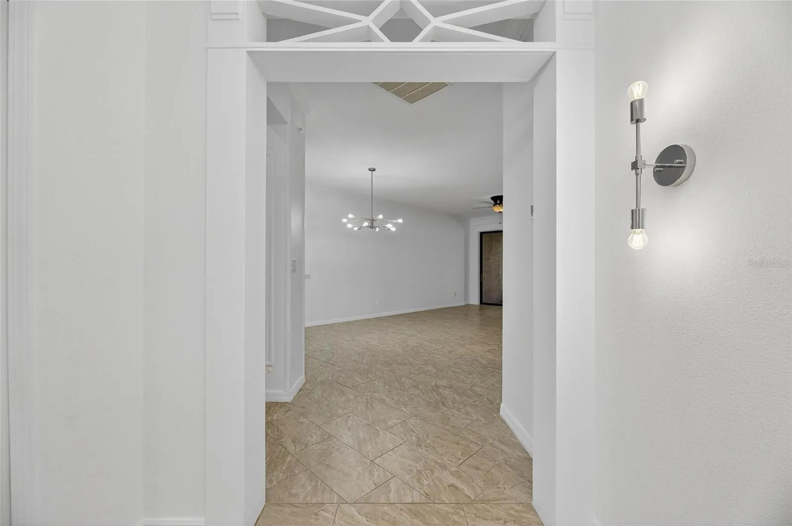 As you enter this home through the SCREENED-IN FRONT PORCH the first thing you will see is the detailing on the floor in the front entrance way followed by the bright study/den with double doors on your left. Walking further into the home is the eat in kitchen with CUSTOM 42” white wood cabinets with a built in wine rack, large pantry, breakfast bar and added detailing in the flooring. The kitchen looks into the dining-room living-room combo with sliding glass doors onto a PRIVATE lanai.