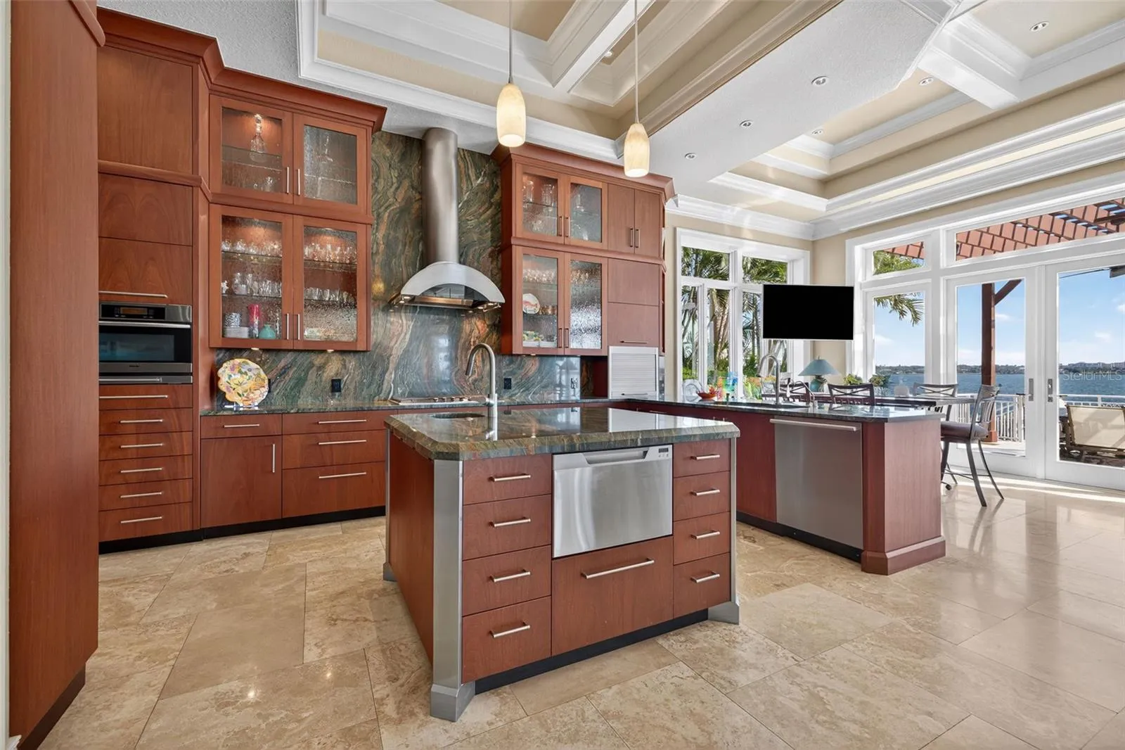 Commandingly positioned at the end of a quiet cul-de-sac in Belleair Beach, this waterfront estate captures unobstructed, wide-open views across the bay from 100 feet of deep-water frontage. Designed for the boating lifestyle, the property offers quick, easy access to Clearwater Pass and the Gulf, with a private dock featuring a 30,000-lb boat lift plus a second lift for personal watercraft. Inside, nearly 6,000 square feet of light-filled living space is tailored for grand entertaining and effortless everyday luxury. The gourmet kitchen showcases Poseidon granite countertops, stainless designer appliances, and rich custom cabinetry, opening to generous living and dining venues that frame the water at every turn. A private upper-level primary suite affords sweeping views of Clearwater Bay and an indulgent spa-inspired bath with a jetted soaking tub, dual vanities, a dedicated makeup station, marble floors, and dual walk-in closets. An impressive amenity suite includes a 2,400-bottle wine room, executive home office, fitness room, elevator, heated pool, and a 20kw gas generator—all curated for comfort, security, and ease. Equally suited to intimate gatherings or large-scale events, this residence embodies refined coastal living both on and off the water.