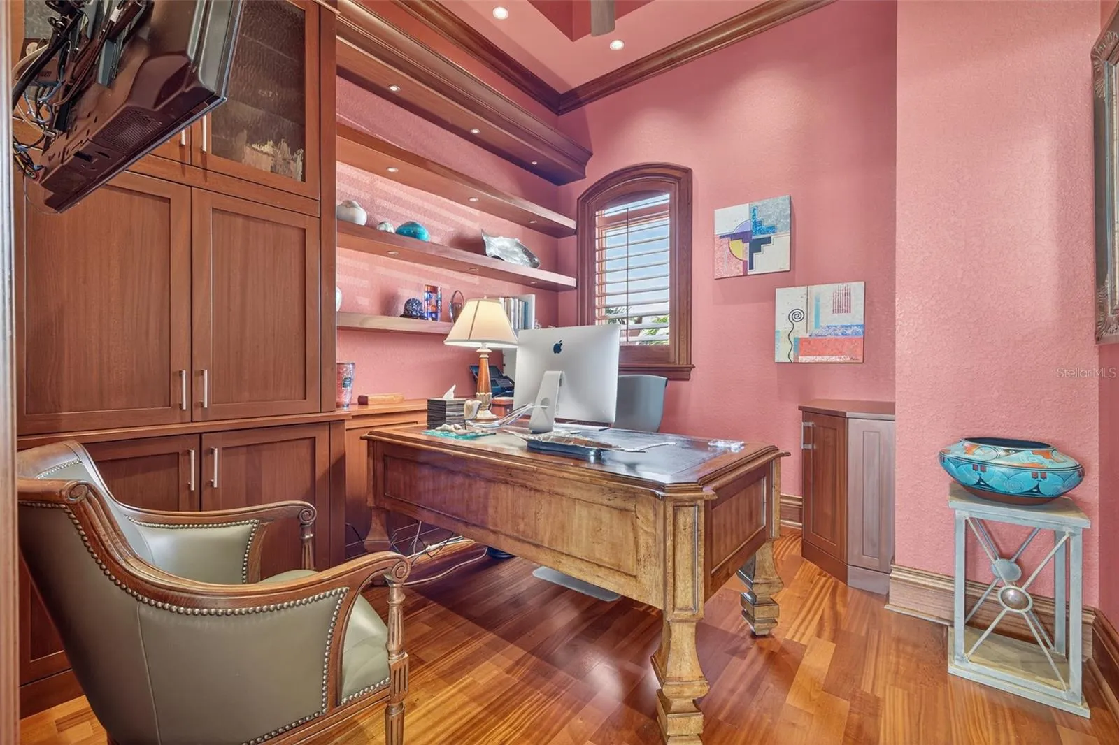 - Ceiling Fans(s), Elevator, Crown Molding, Open Floorplan, Walk-In Closet(s), Eat-in Kitchen, High Ceilings, Stone Counters, Solid Wood Cabinets, Central Vaccum, Wet Bar, Built-in Features, PrimaryBedroom Upstairs
