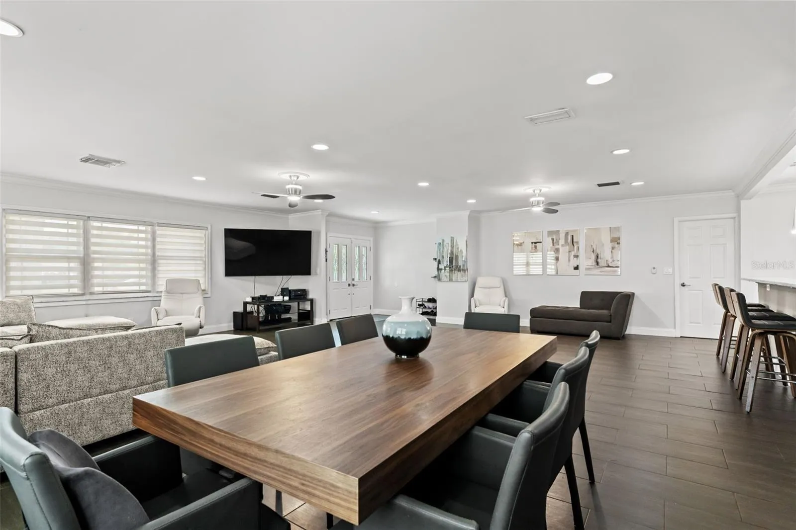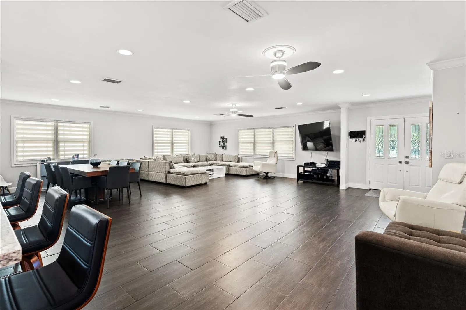 Are you seeking for a spacious home in the waterfront community of Davis Islands? Look no further than 516 East Davis Boulevard, a beautifully updated ranch home with contemporary flair. This stunning property features 4 bedrooms, 3 full baths, and 2,700 square feet of living space, all situated on a massive 11,000+ square foot lot. The home includes a separate bonus room that can serve as an in-law suite, adding to its versatility. This expansive single-story residence boasts an open-concept floor plan designed to maximize space and natural light. The living area seamlessly flows into the dining and kitchen spaces, making it perfect for both entertaining and everyday living. Decorated with beautiful neutral gray porcelain tile, recessed lighting, and an abundance of windows, the home is bathed in natural light throughout the day.