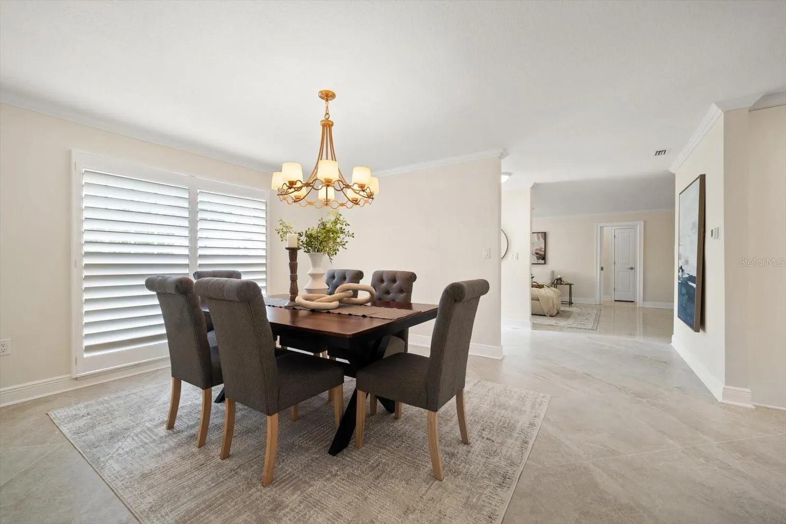 One or more photo(s) has been virtually staged. Welcome to your dream home in coveted Belleair Beach, where curb appeal, lush tropical landscaping, and an expansive lot set the stage for elegant coastal living. Step inside to an open and bright floor plan anchored by a show-stopper kitchen featuring granite countertops, custom soft-close cabinetry, a microwave drawer, touch kitchen faucet, stainless steel appliances, a sleek vent hood, and a generous breakfast bar perfect for casual dining. The kitchen flows seamlessly into the formal dining room for easy and effortless entertaining. Relax in the light-filled sunroom that opens to a resort-style pool and hot tub surrounded by swaying palms, offering unmatched privacy and relaxation. The desirable split-bedroom layout includes a private primary suite that can be closed off with a pocket door and features a custom walk-in closet, floor-to-ceiling windows, and a spa-inspired ensuite with a double sink vanity, fog-free LED backlit mirrors, and a walk-in shower. Additional bedrooms are equally well-appointed with custom closets—one with special space for long gowns—and share a beautifully renovated hall bath with granite counters and a fog-free LED mirror. These rooms can also be separated with pocket doors for added privacy. An indoor laundry room provides everyday convenience, while crown molding, plantation shutters, and meticulous maintenance elevate the home’s sophistication. Ideally located near restaurants, shopping, the Belleair Causeway, and Sand Key, with sparkling resident only beach just a block away, this exceptional residence captures the essence of luxury coastal living.
