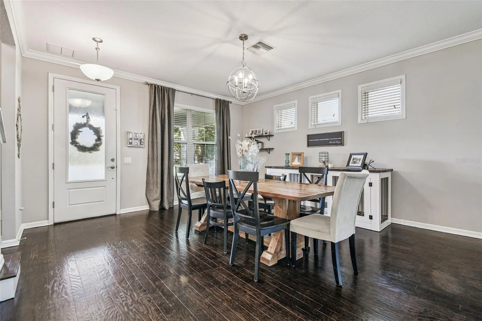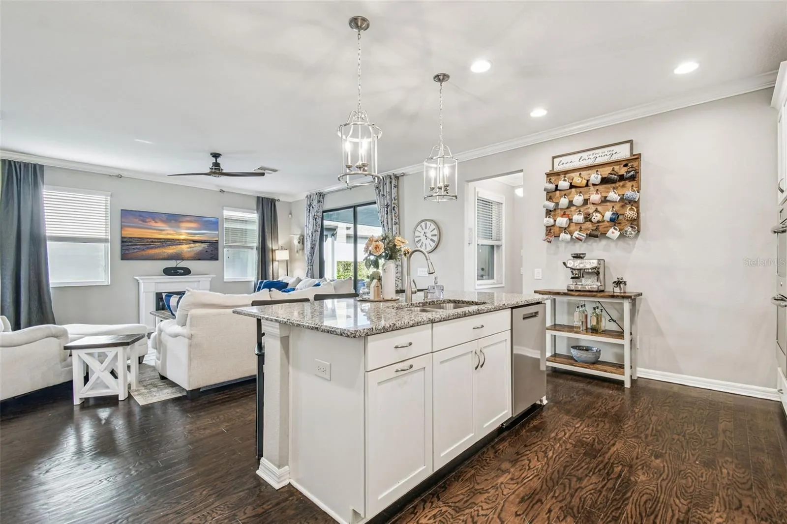 - Ceiling Fans(s), Crown Molding, Open Floorplan, Walk-In Closet(s), Living Room/Dining Room Combo, Kitchen/Family Room Combo, Split Bedroom, Window Treatments, Stone Counters, Smart Home, In Wall Pest System, Tray Ceiling(s), PrimaryBedroom Upstairs